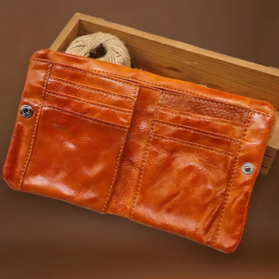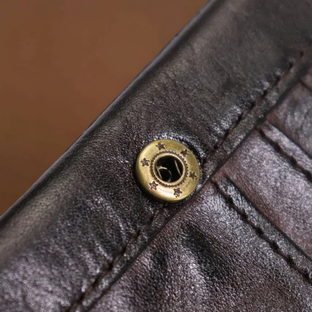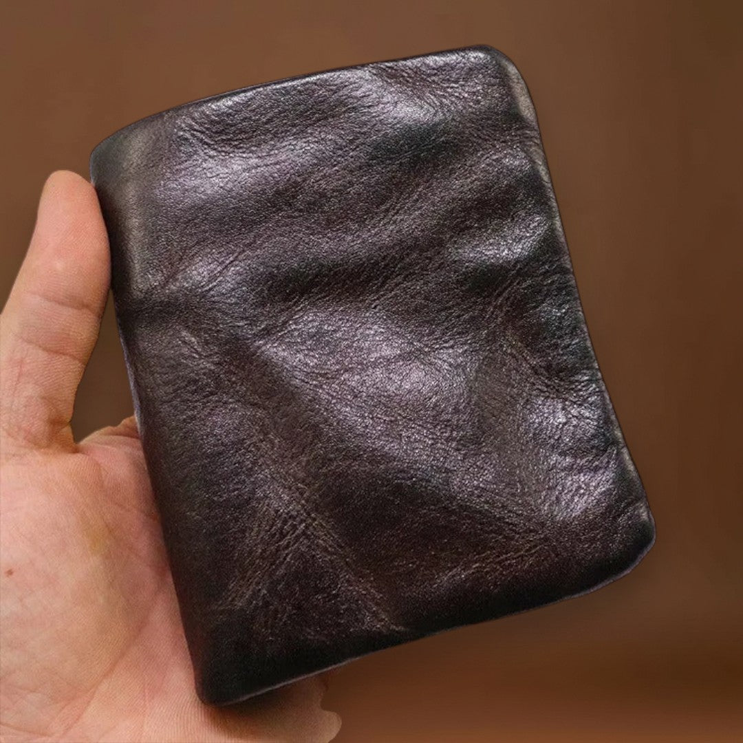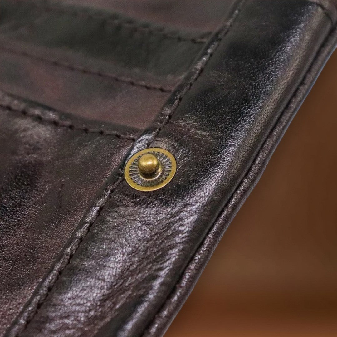 Esta carteira já parece que é sua há anos—da melhor maneira possível. Feita de couros macio e usado à mão, dobra-se e molda-se com facilidade, adaptando-se ao seu bolso desde o primeiro uso. O estilo robusto e vivido combina perfeitamente com denim e flanela, trazendo autenticidade casual aos seus itens essenciais do dia a dia.