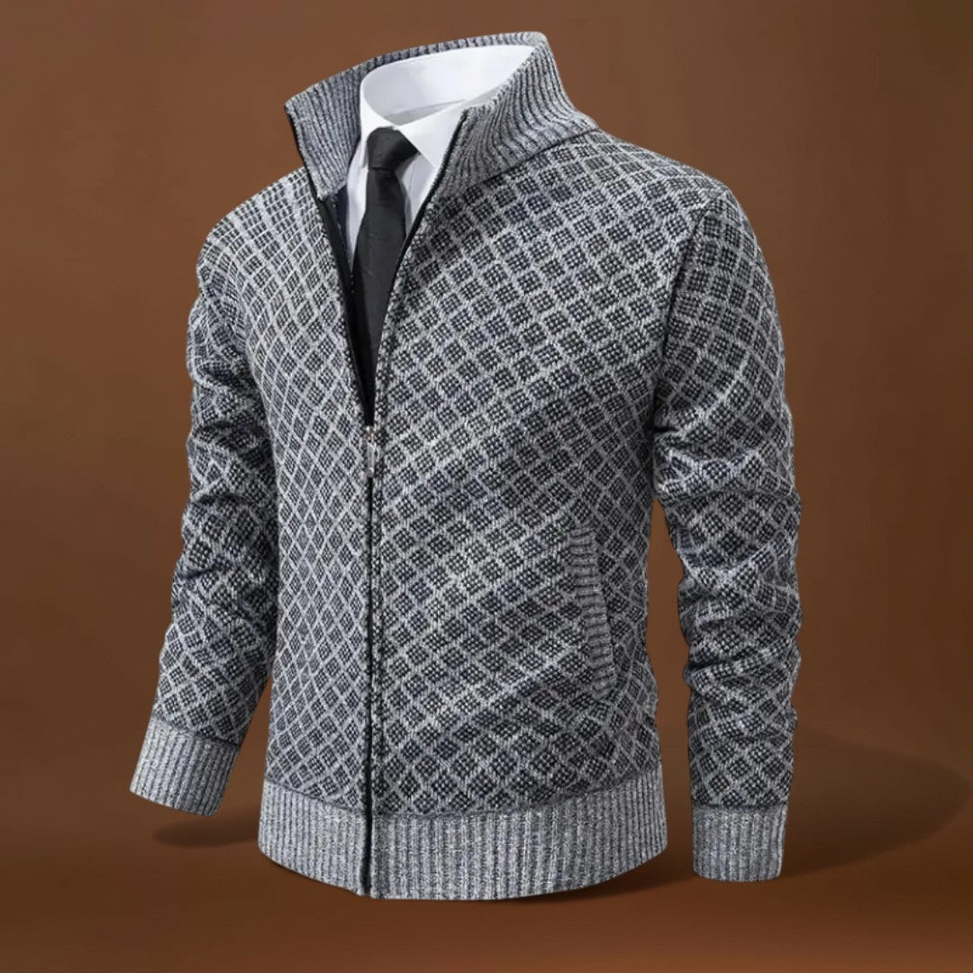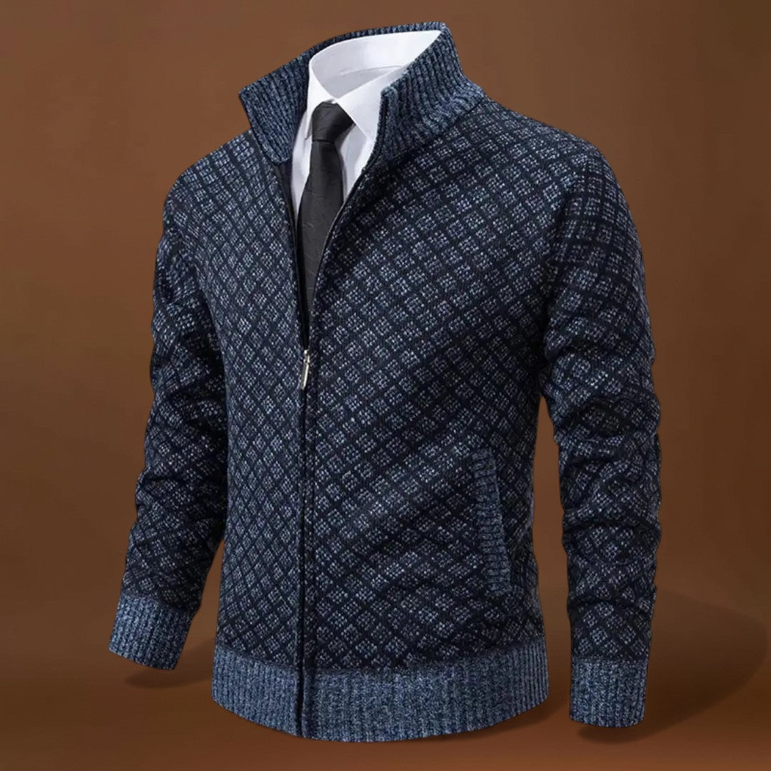 Esta gola alta em malha jacquard foi criada para reduzir o frio e bloquear o vento, mantendo o conforto contra a pele. O tecido utiliza uma mistura de twill jacquard densamente tecido e baffles isolantes incorporados para formar uma barreira fiável contra as brisas frias. O design de gola alta proporciona cobertura à volta do pescoço para limitar a perda de calor.
