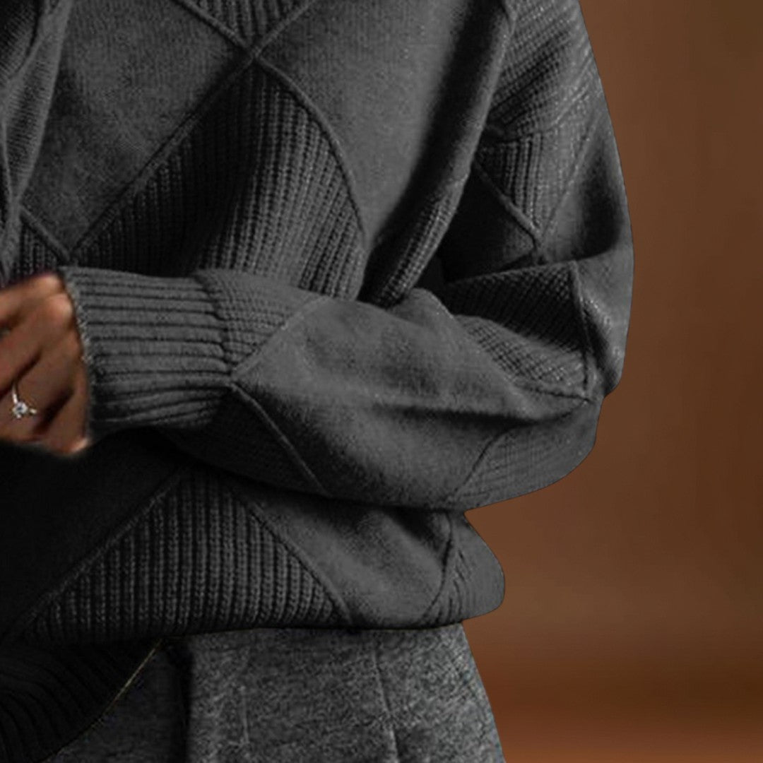 Experimente a fusão perfeita de sofisticação e calor com o Sweater de Gola Alta Matilde™, projetado para elevar o seu estilo enquanto o mantém aconchegado.