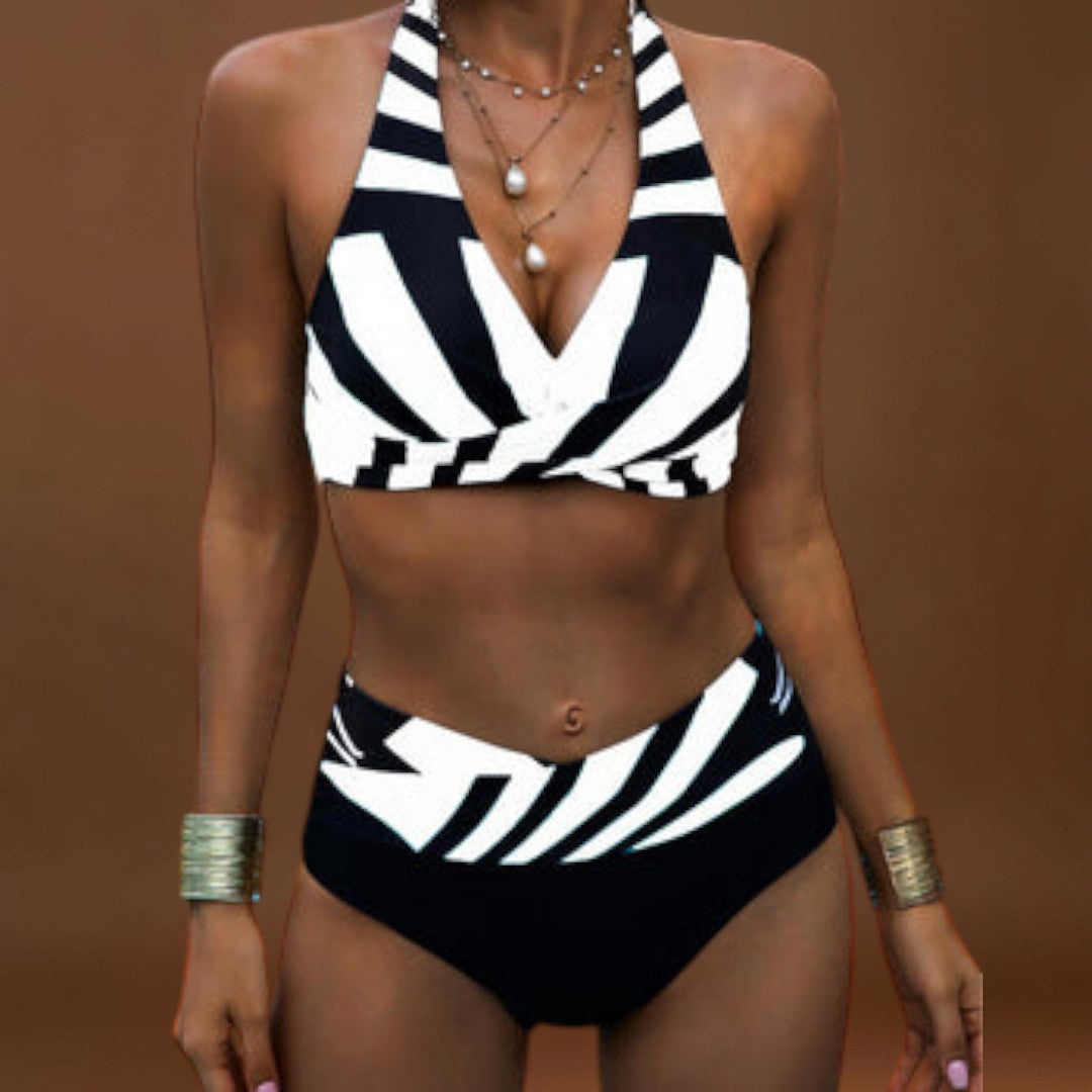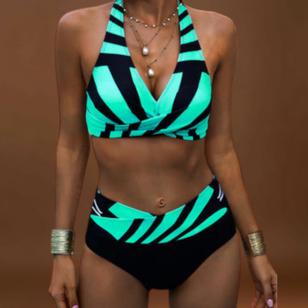 Este biquíni Clara combina sustentação suave com uma cintura subida que disfarça a barriga de forma elegante. O design sem aro garante conforto sem apertar, ideal para um corpo em mudança. As riscas marcantes acrescentam um toque divertido e moderno que a farão sentir-se confiante e feminina em qualquer dia de praia.