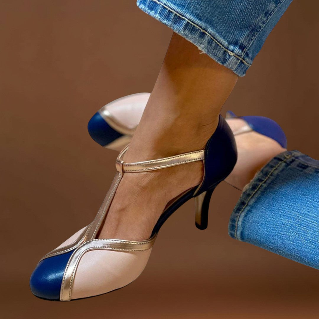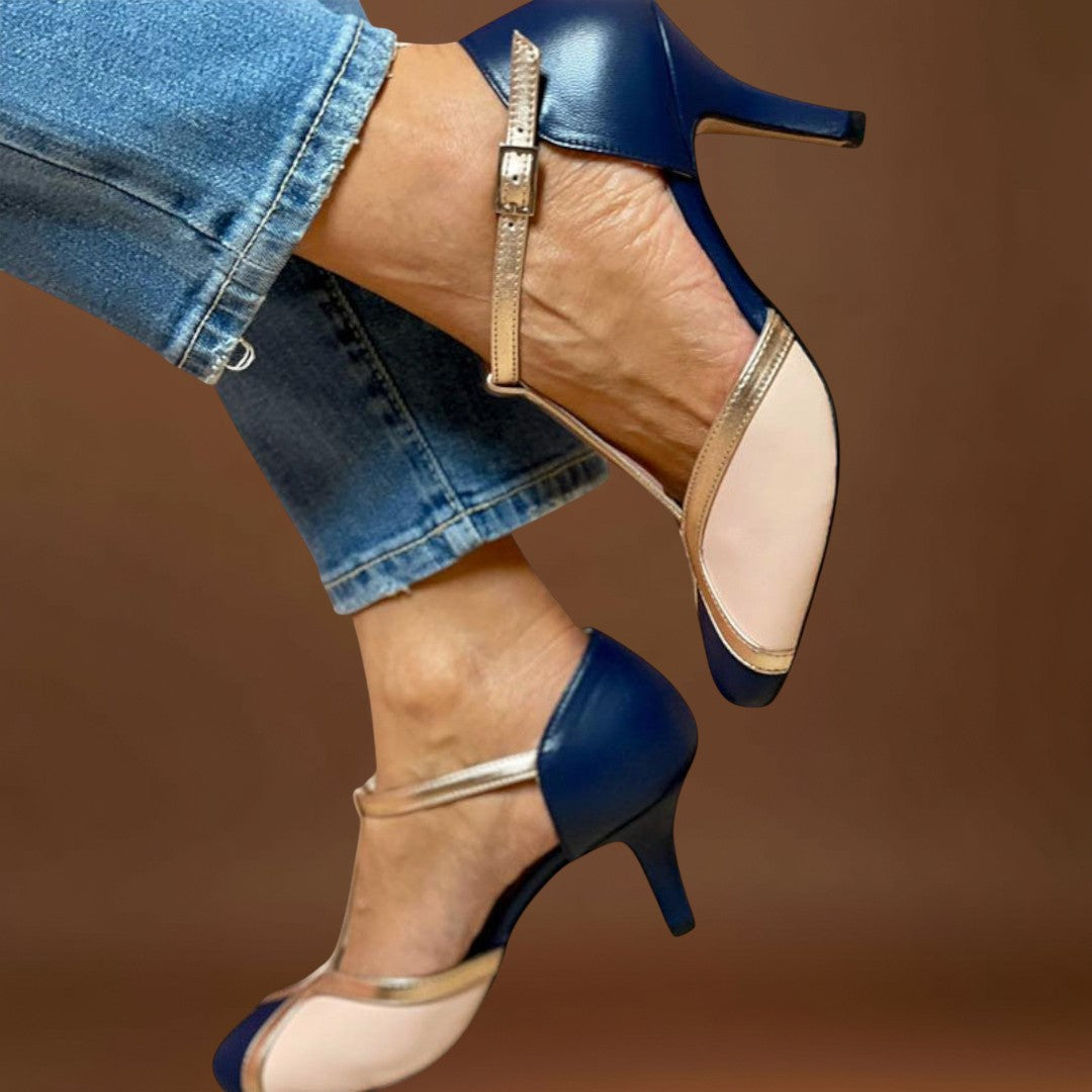 Descubra a combinação perfeita de linhas arrojadas, conforto refinado e um toque de inspiração vintage com os Saltos Elegantes. Estes elegantes sapatos com tira em T, disponíveis em Azul Marinho, Rosa Suave e Dourado Rosado metálico, oferecem não só um estilo irrepreensível, como também um apoio estruturado.