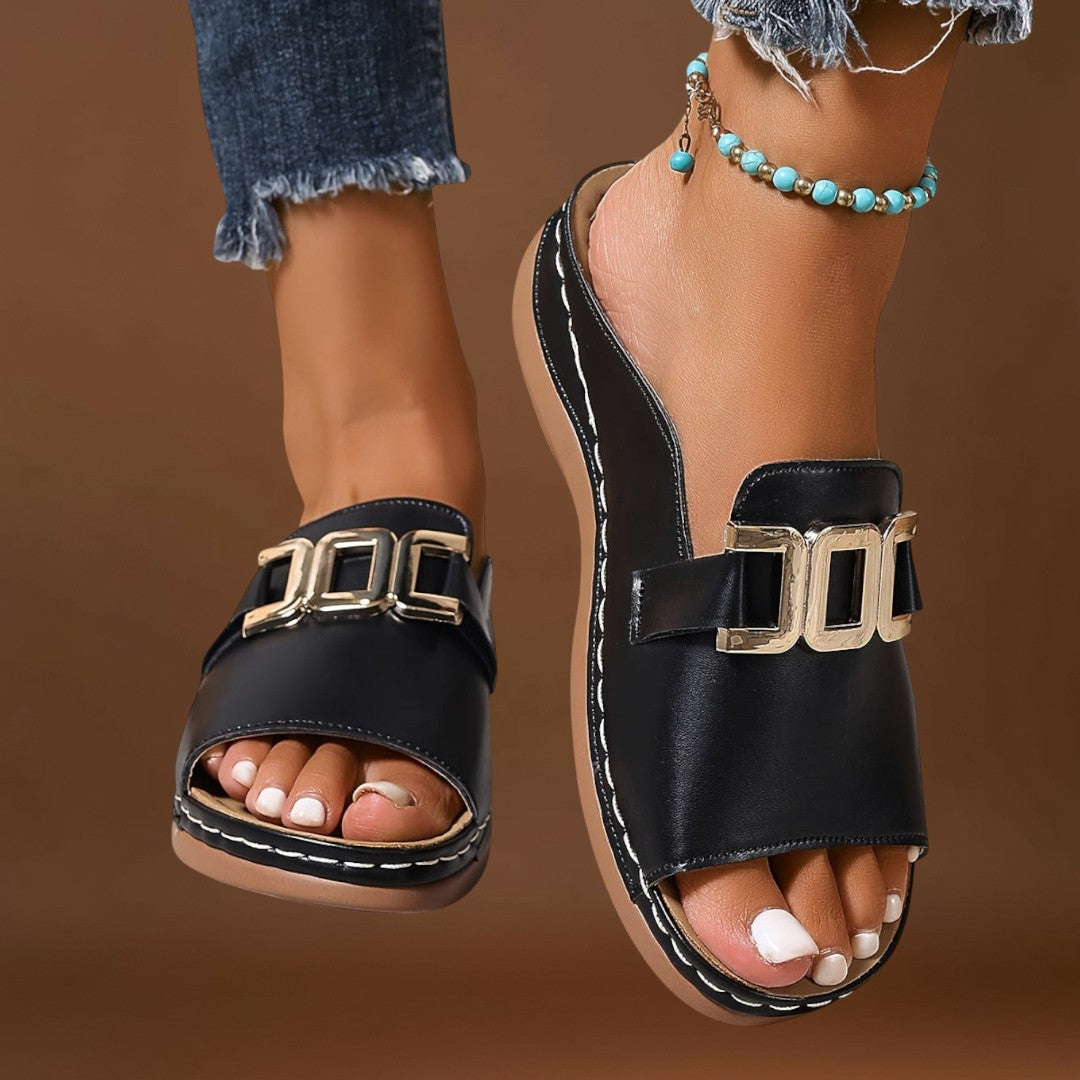 As sandálias teresa são a prova de que é possível ter conforto sem abdicar do estilo. Com um design moderno e uma fivela decorativa, estas sandálias destacam-se pela sua elegância e simplicidade. A sola suave e flexível torna-as a escolha perfeita para usar durante horas, seja para um passeio ou para um dia de trabalho.