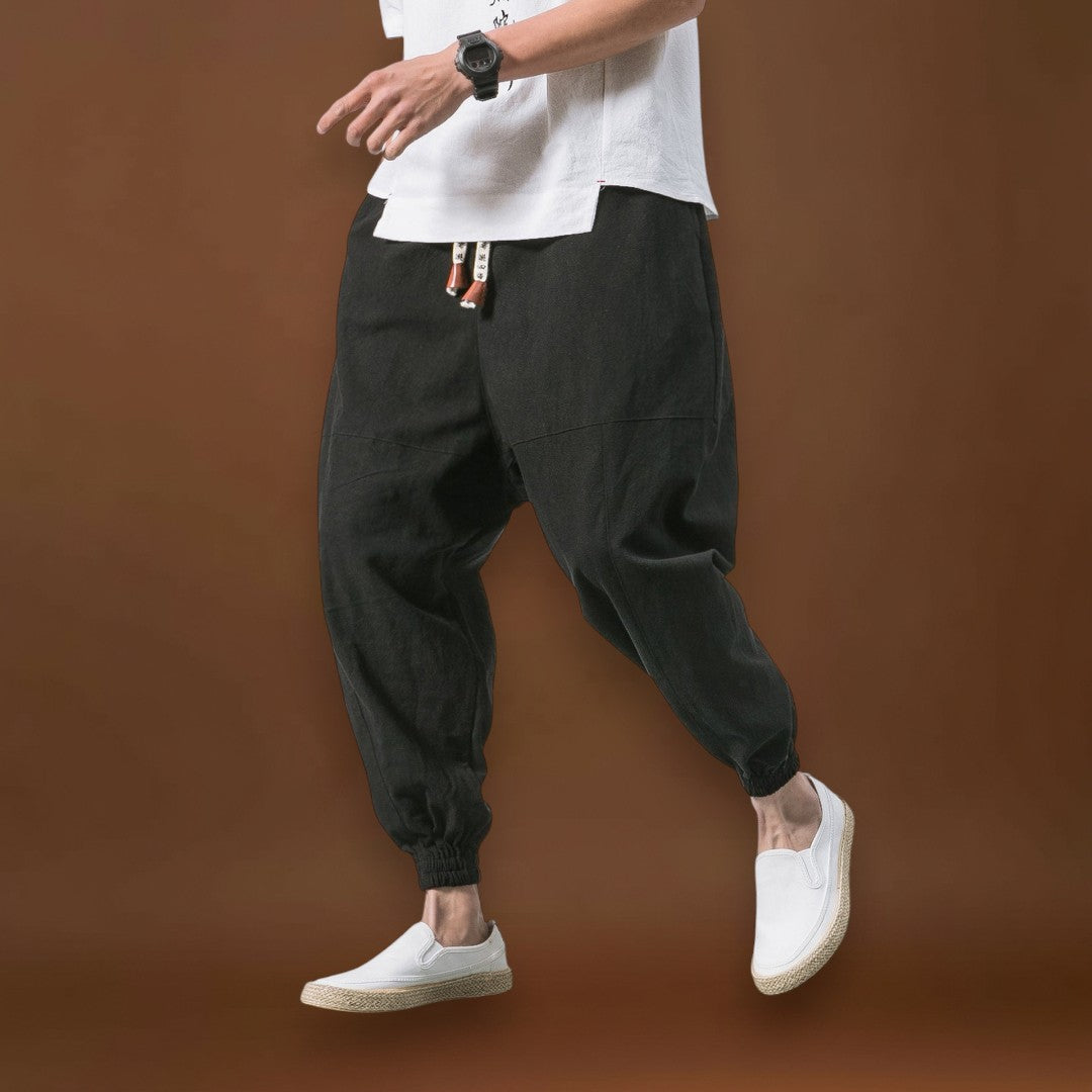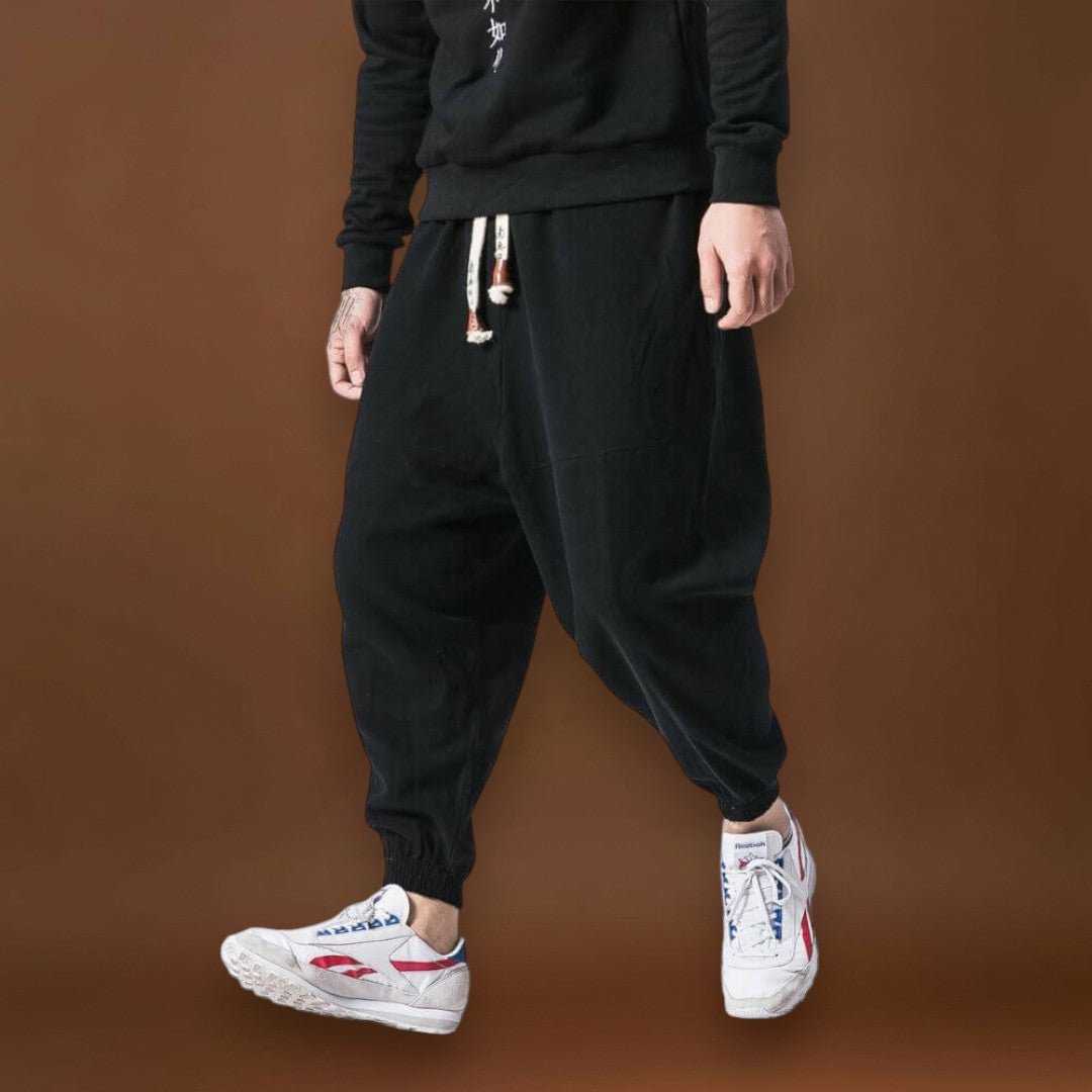Relaxe em grande estilo com as calças de harém de algodão Shao!
