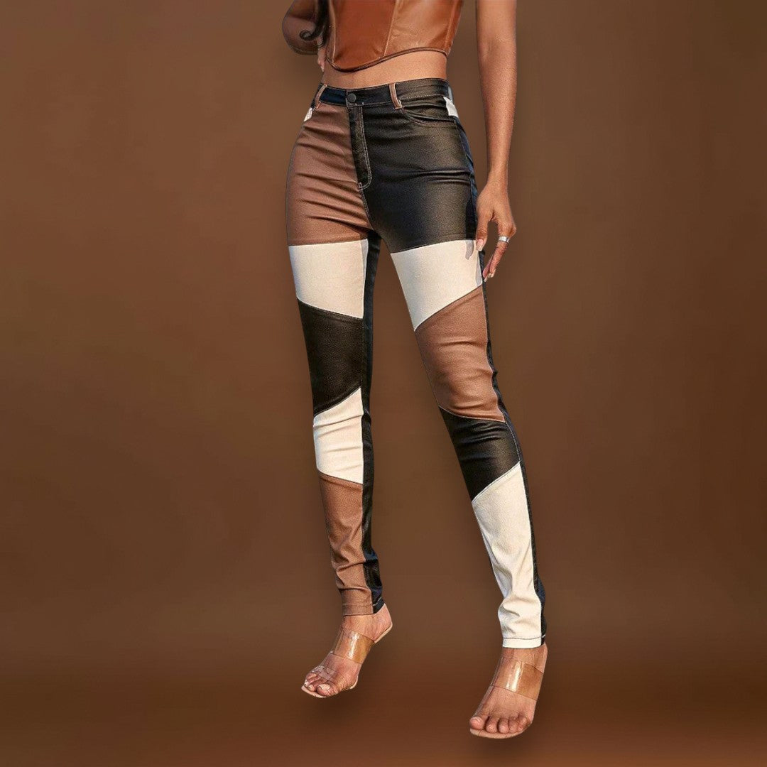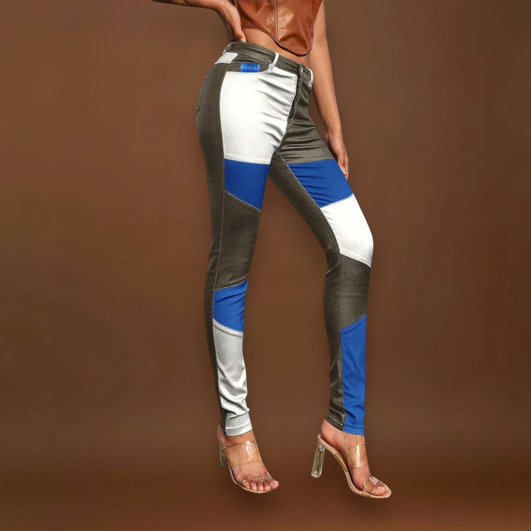 Amélia - Calças de tubo com padrão de blocos de cores