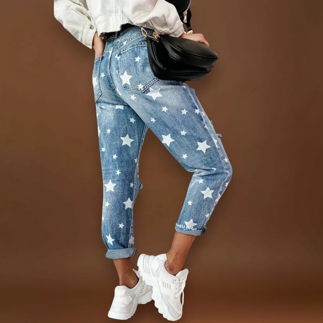 Adicione jóias ou um lenço para realçar o padrão único das calças.