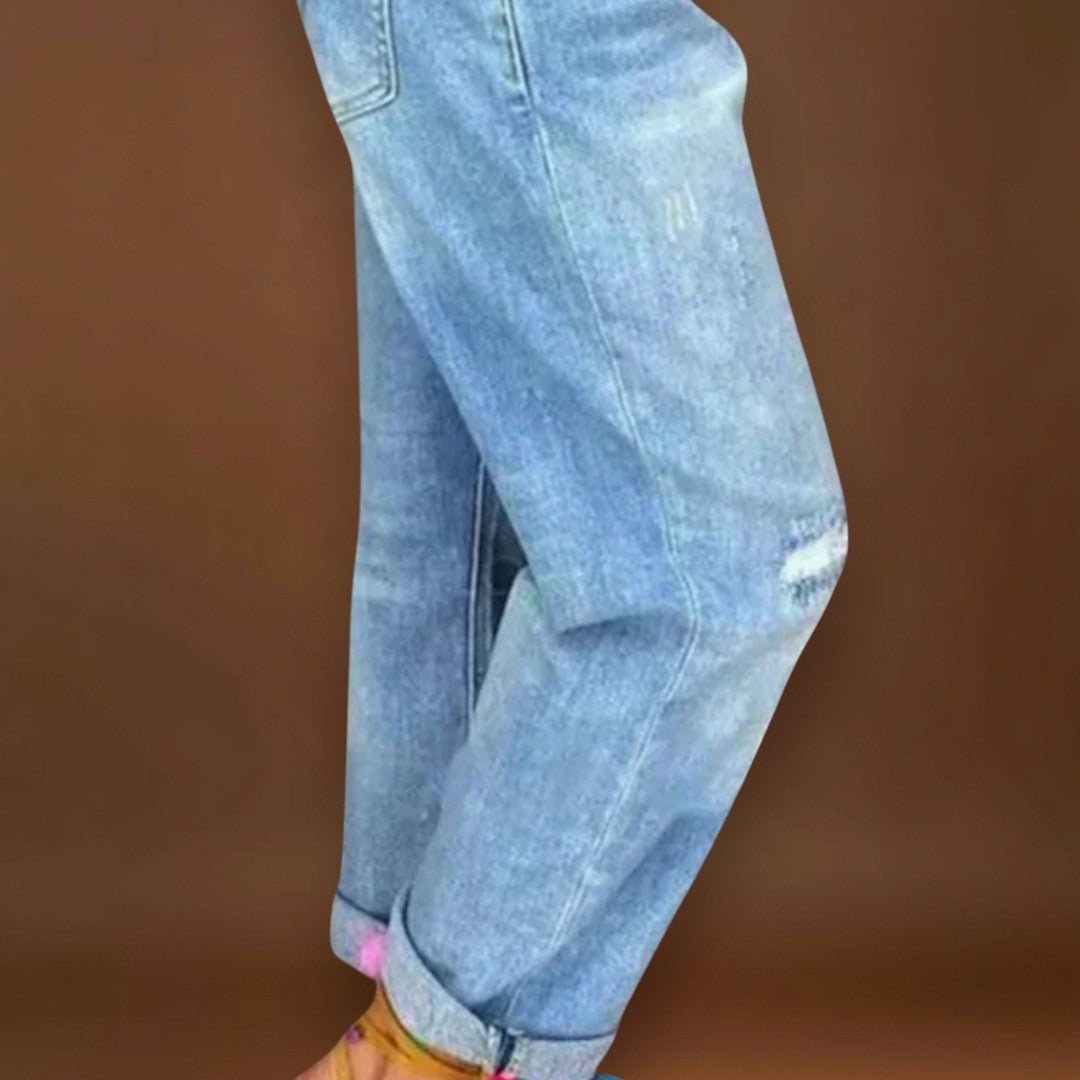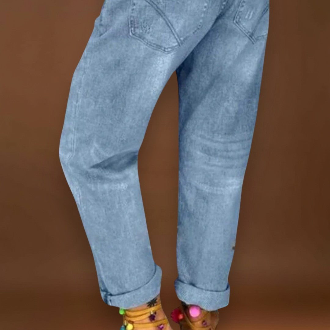 Design moderno: As calças de ganga Cíntia simples dão ao seu conjunto um aspeto fresco e moderno - perfeito para a primavera.