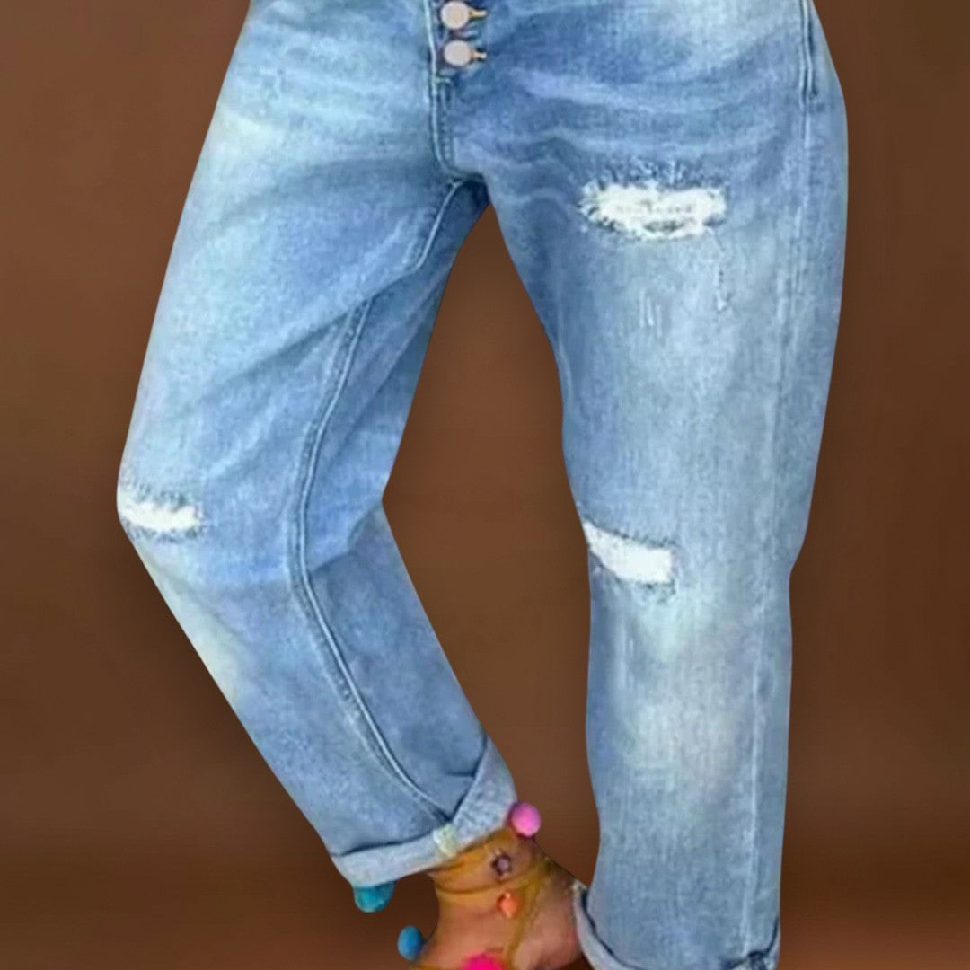 As nossas calças de ganga Cíntia não são apenas um par de calças - são uma afirmação de estilo e conforto para a primavera. Com o seu design moderno e corte descontraído, são um must-have em qualquer guarda-roupa que valorize a leveza e a elegância da primavera.