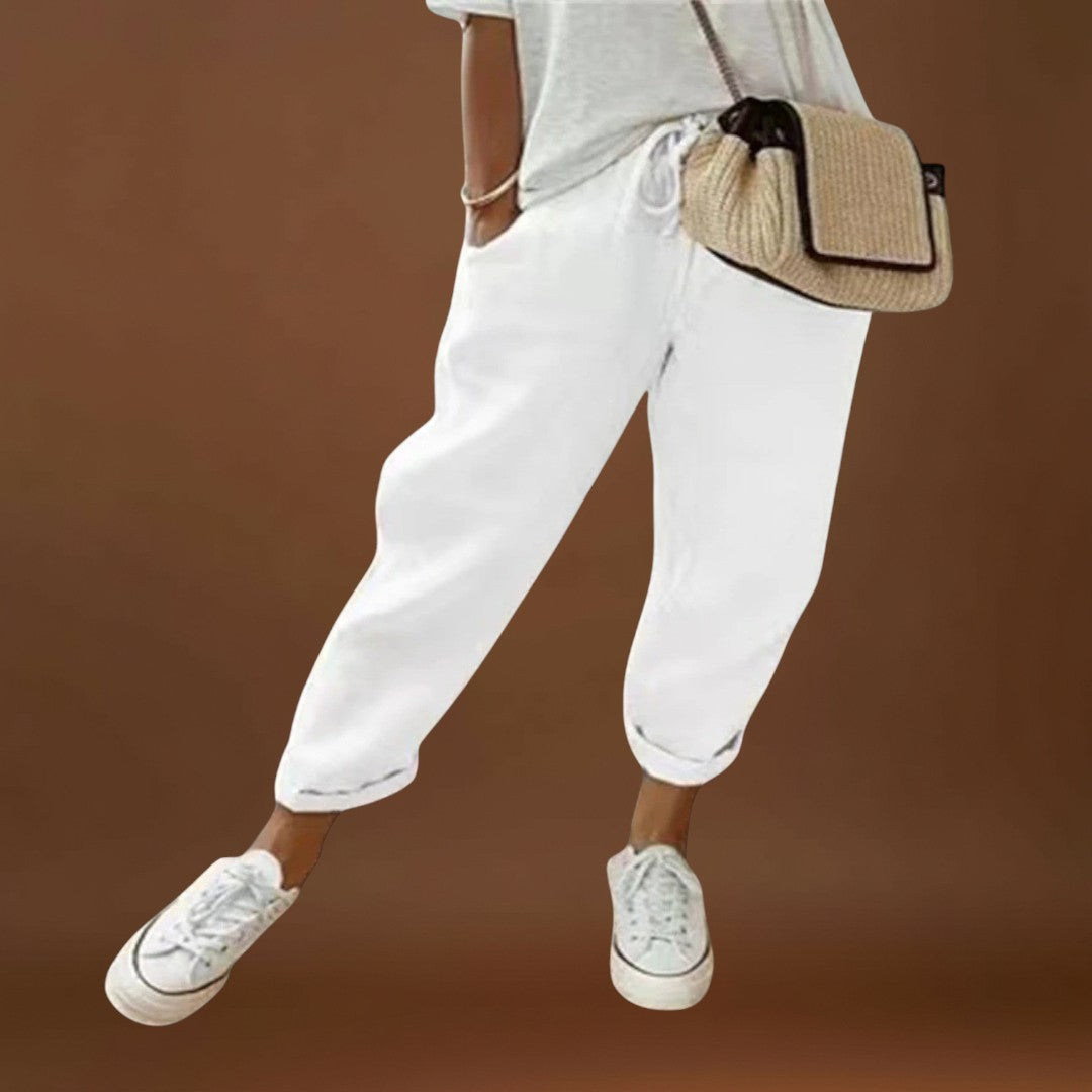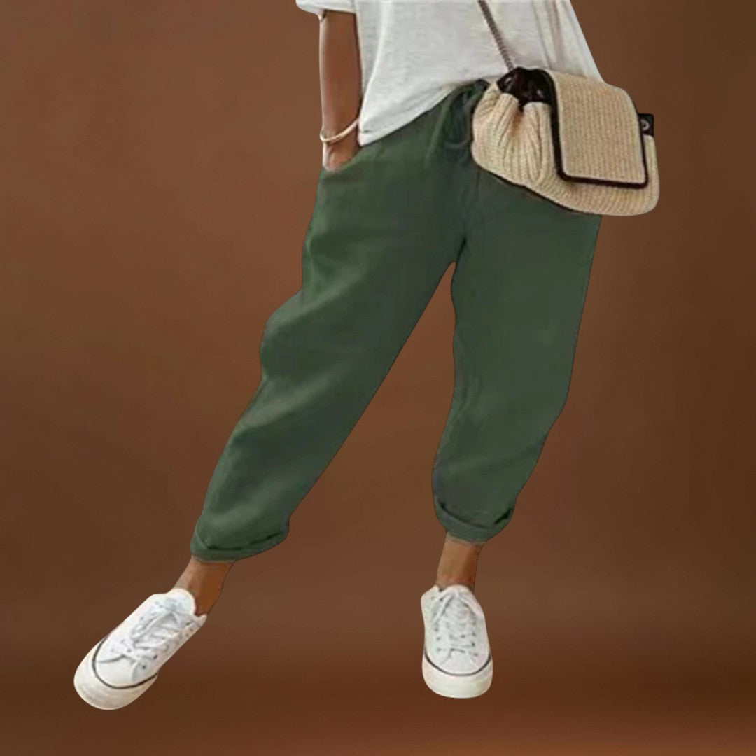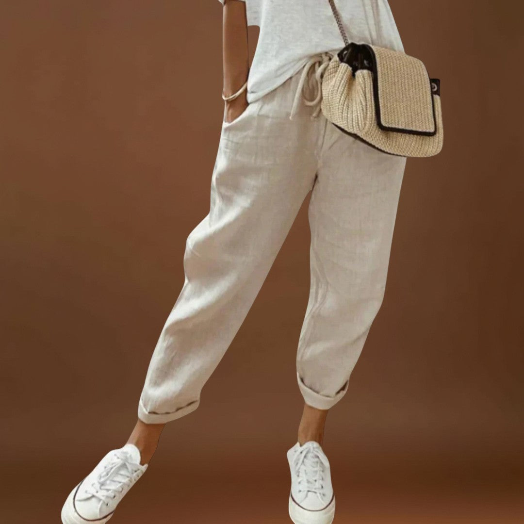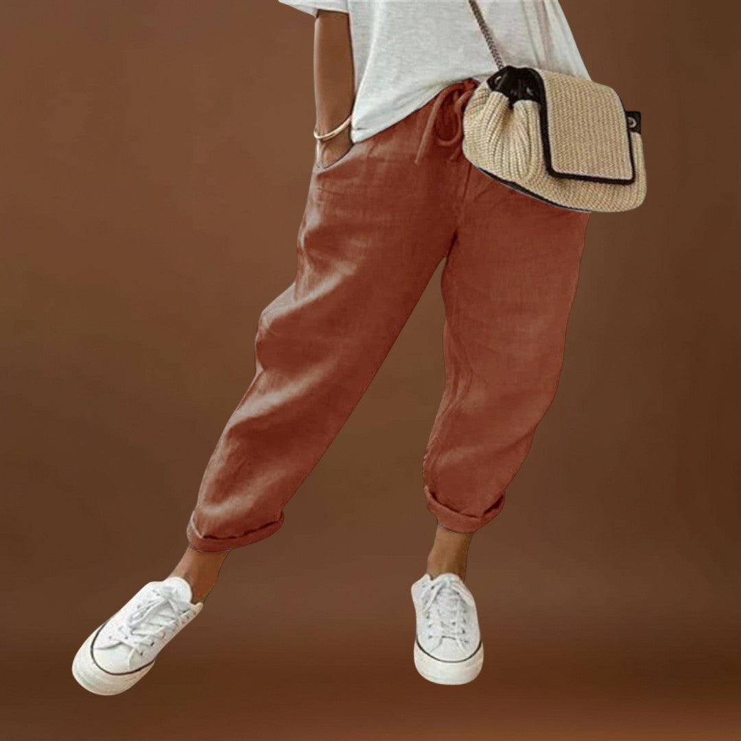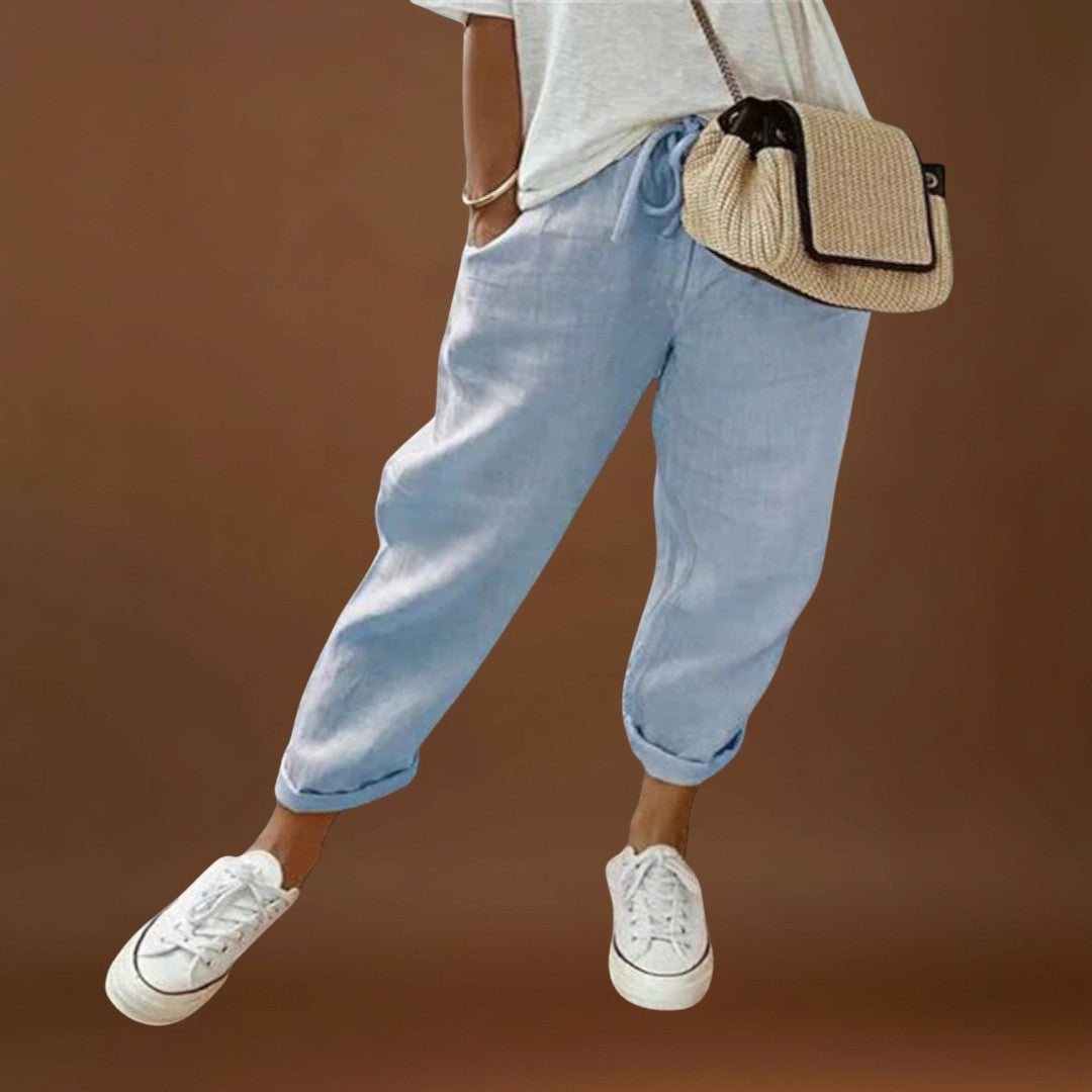 • Design leve e arejado: Estas calças de senhora são confortáveis de usar graças ao material de linho de alta qualidade, mesmo nos dias quentes de verão.