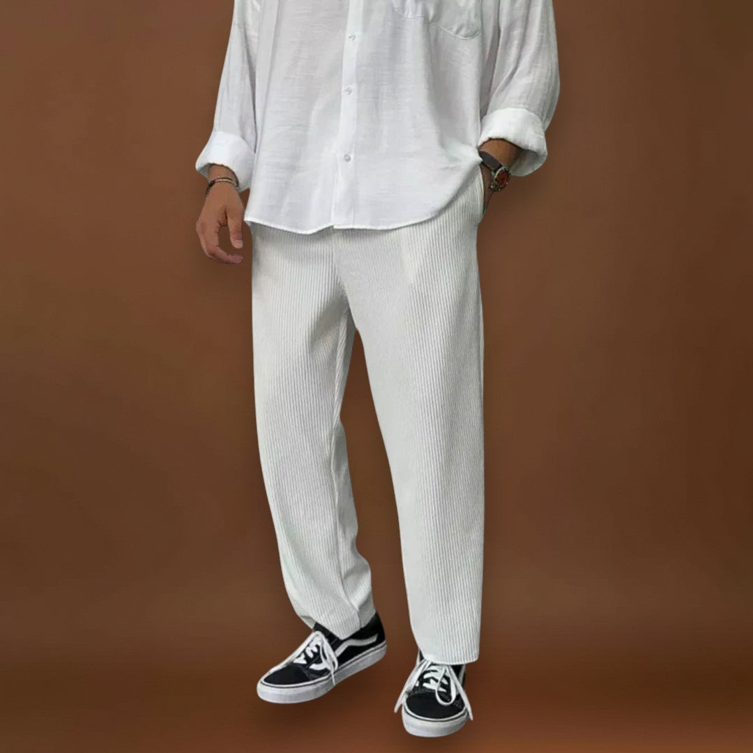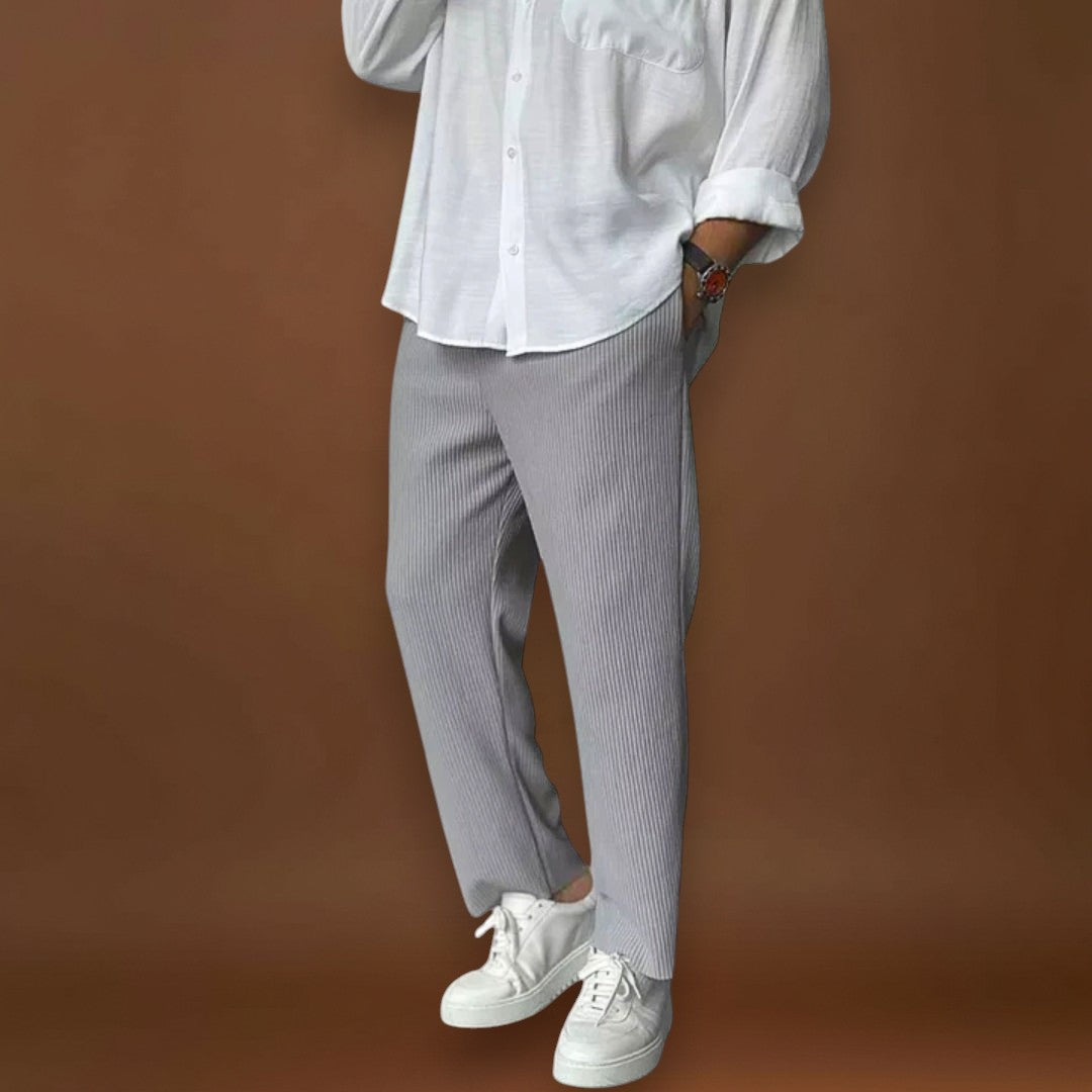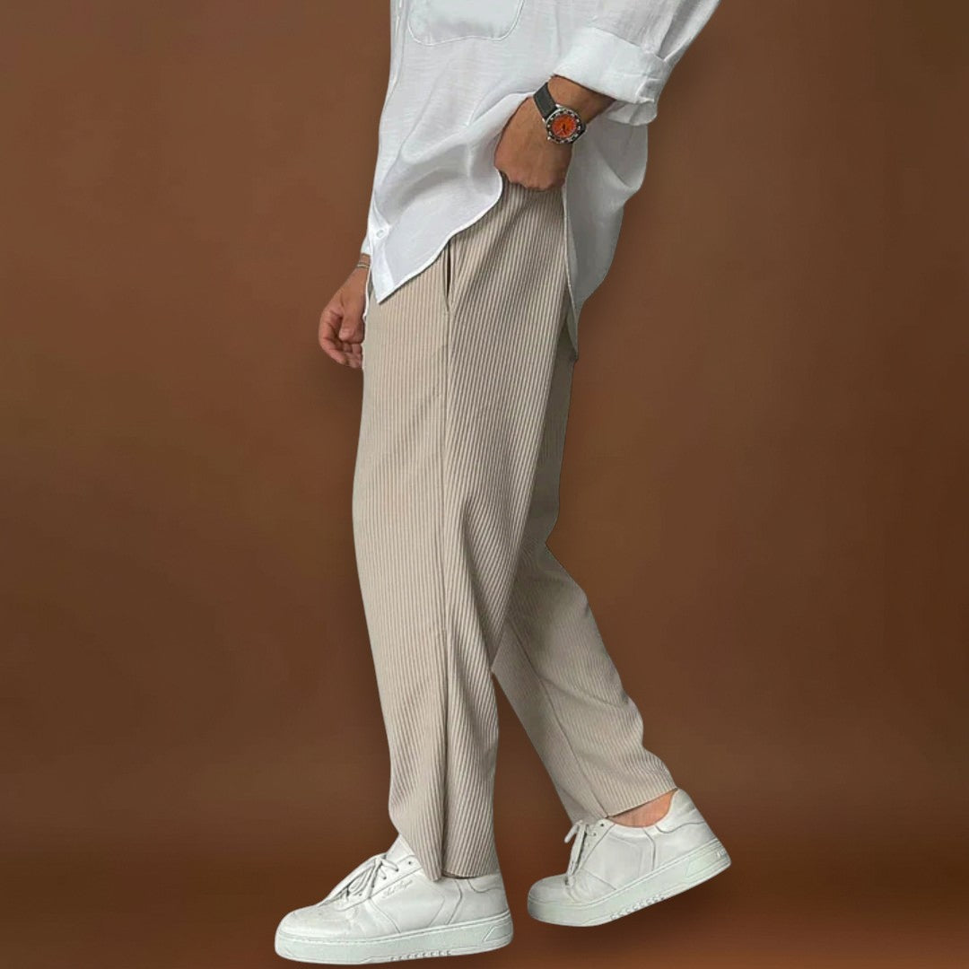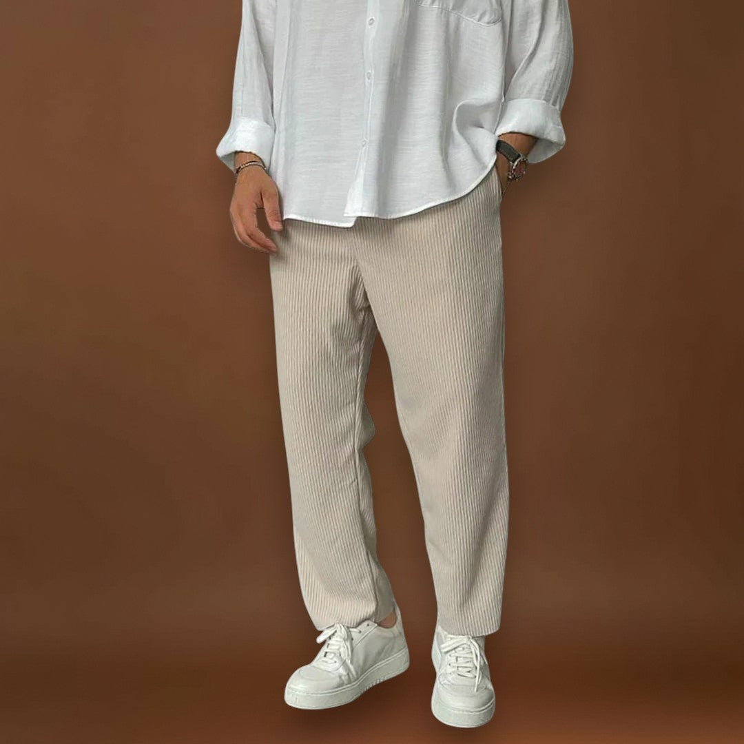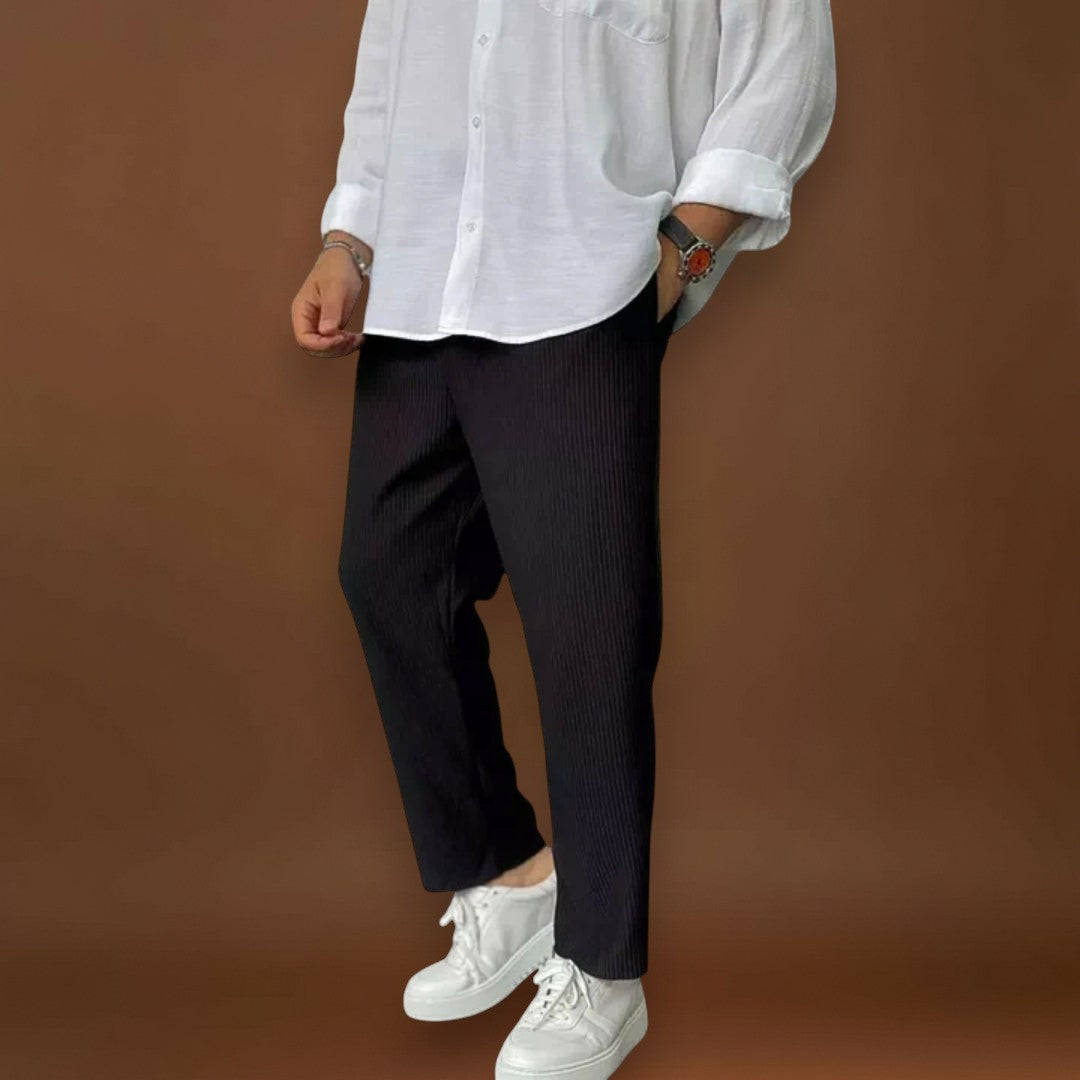 Descobre o equilíbrio perfeito entre estilo, conforto e sofisticação com as calças de luxo macias Miguel. Confeccionadas em materiais premium, oferecem um toque luxuoso e um corte impecável que se adapta naturalmente ao corpo. Com um design subtil e elegante, estas calças são a escolha ideal para quem procura classe em qualquer ocasião.