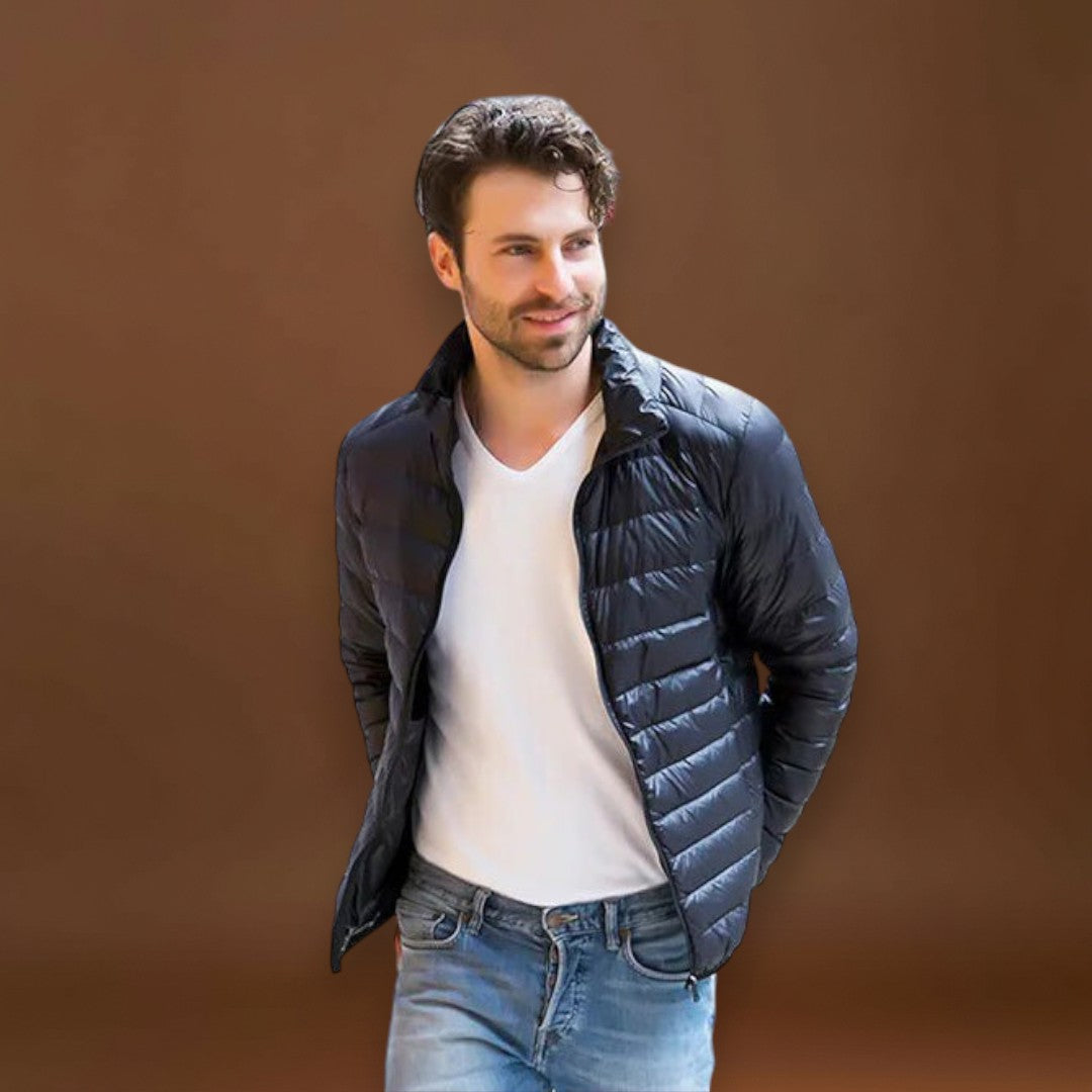 Este casaco é impermeável e à prova de vento. Bloqueia o vento e a chuva para ajudar a manter o corpo quente e seco. O design é elegante e feito para um aspeto moderno, mantendo a funcionalidade simples e clara.