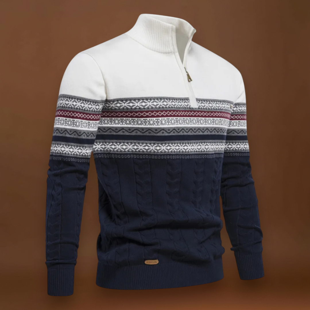 • Estilo: Jumper de abertura de quarto de zíper com detalhe em malha de cabos