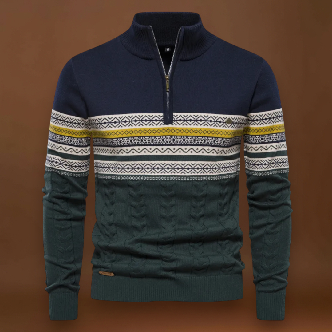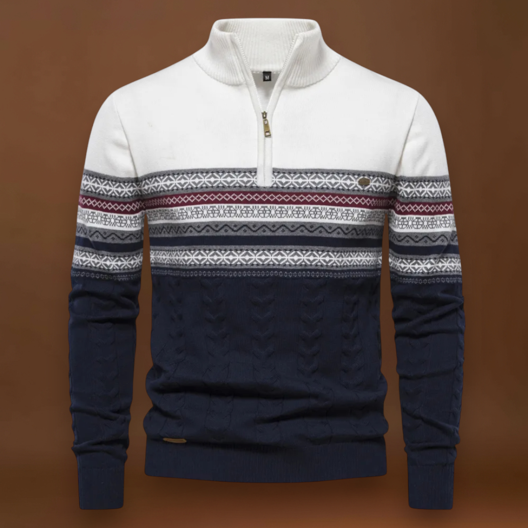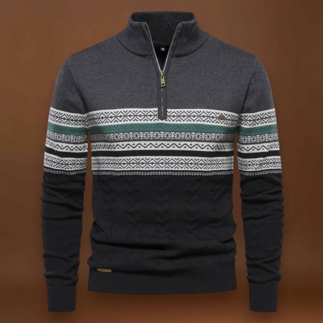 O jumper Alpenfrost apresenta um padrão alpino bicolor com detalhes em malha de cabos que adicionam textura e estrutura. A abertura de quarto de zíper permite ventilação ajustável e uma simples modelagem do colarinho. A mistura de malha proporciona um equilíbrio entre um toque confortável e uma durabilidade de uso.