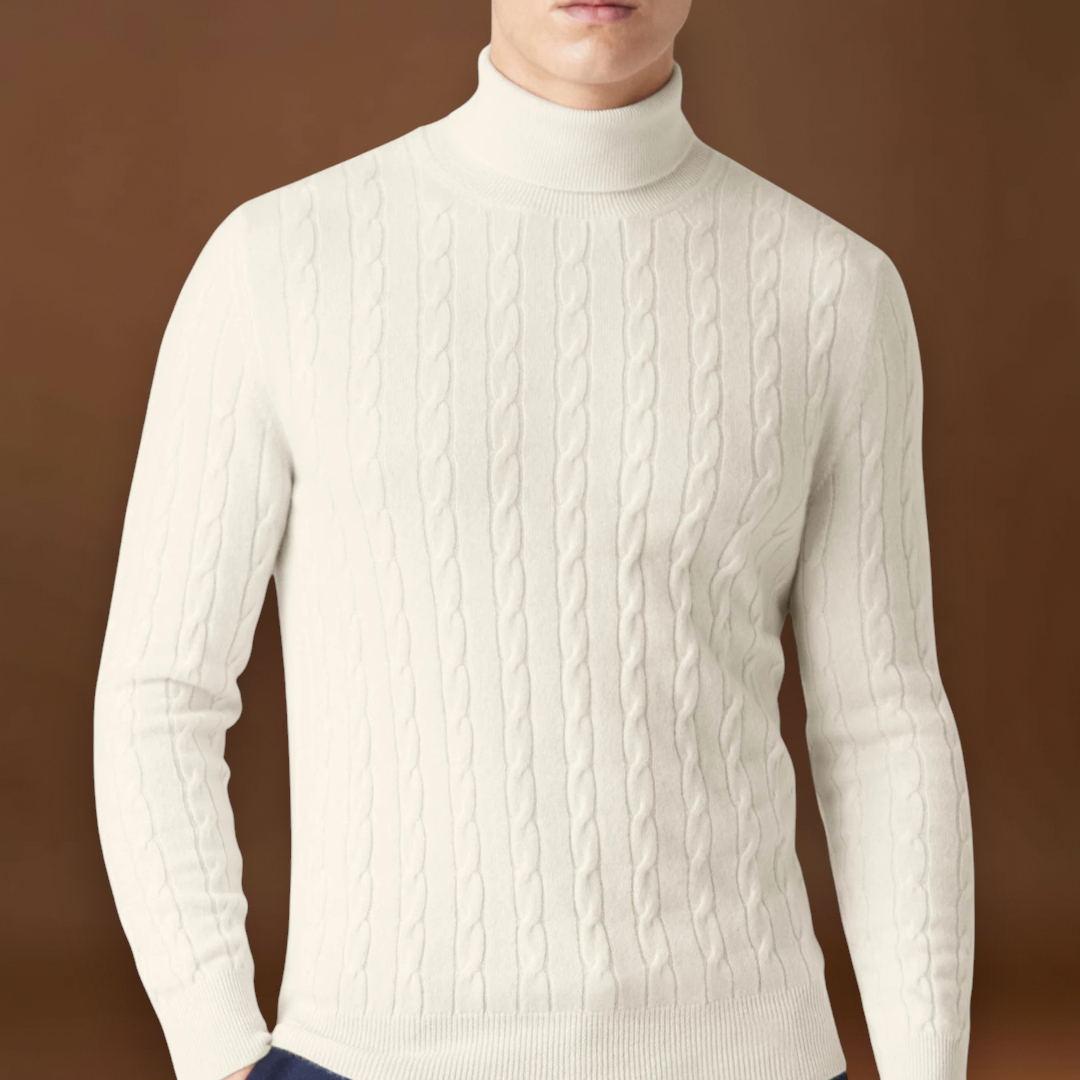 O Suéter de Gola Alta em Malha é um suéter descontraído feito de uma mistura de desempenho suave e elástica. Apresenta uma gola alta e uma textura de malha que adiciona estrutura à peça.