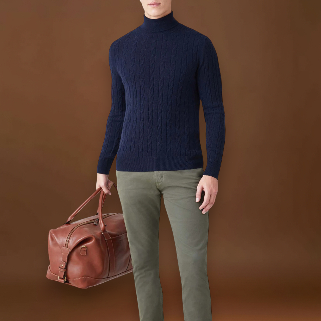 • Decote: Gola alta de turtleneck