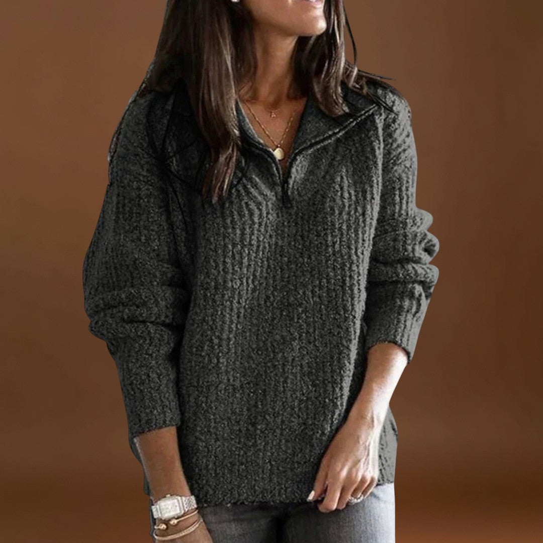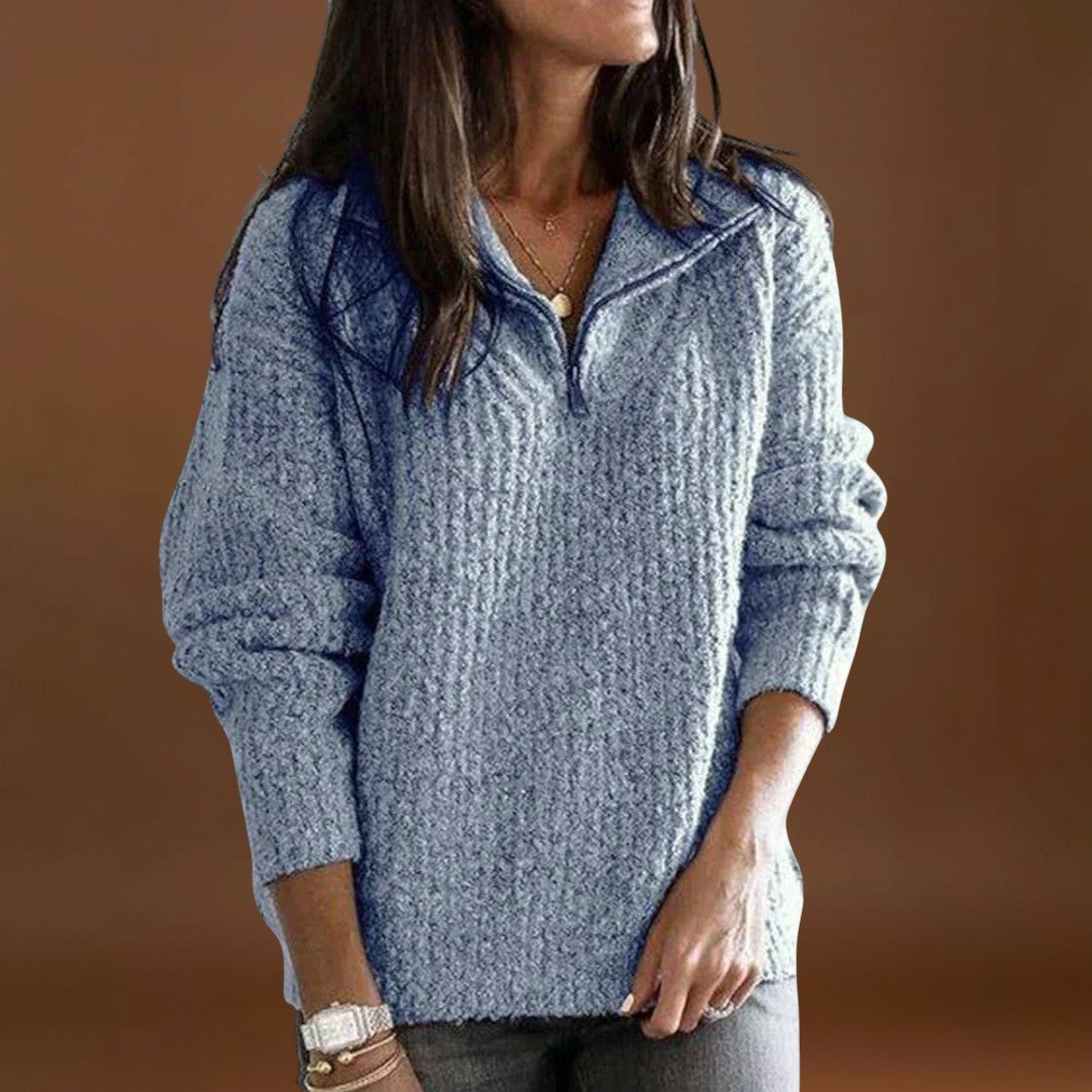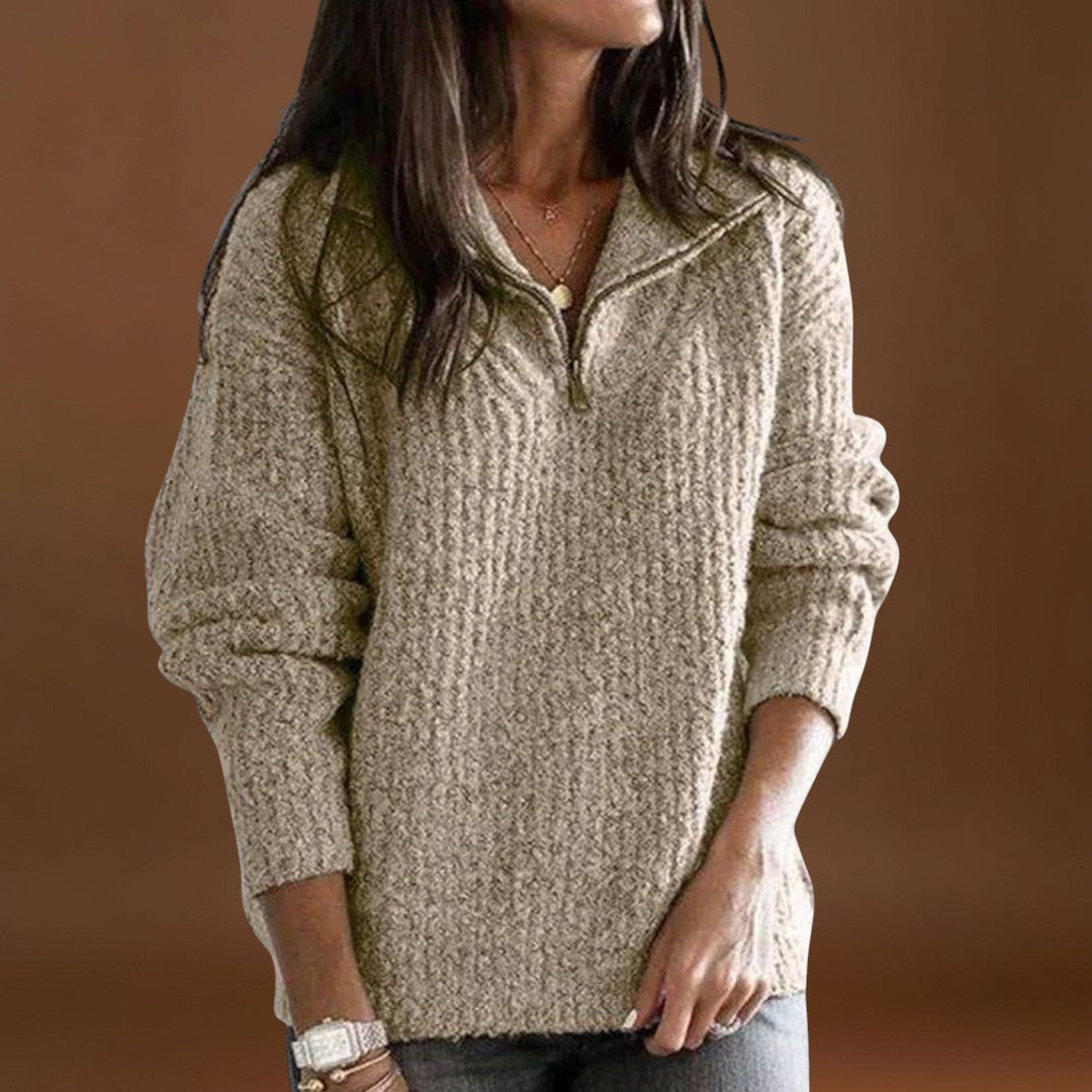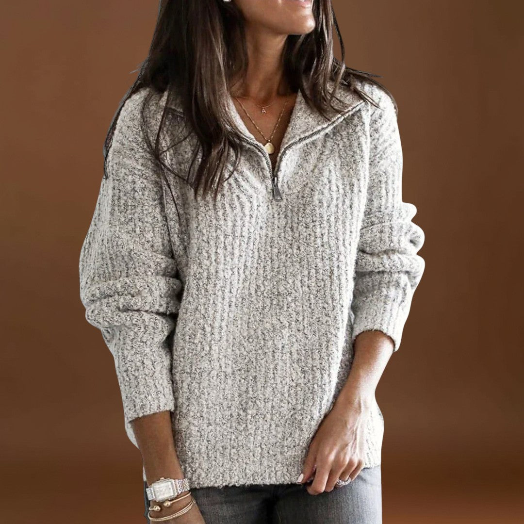 Mantenha-se aquecida e confortável neste suéter de inverno de corte relaxado, com fecho de meio zíper, que dá um toque moderno e prático. As mangas longas e o material suave proporcionam calor e conforto, tornando-o perfeito para o uso diário ou aventuras ao ar livre no inverno.