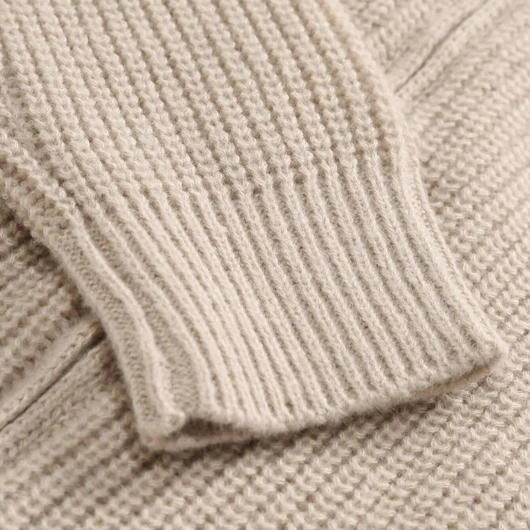 - Barra e punhos retos: Criam um ajuste arrumado nas bordas e ajudam o cardigã a assentar suavemente sobre as camadas.