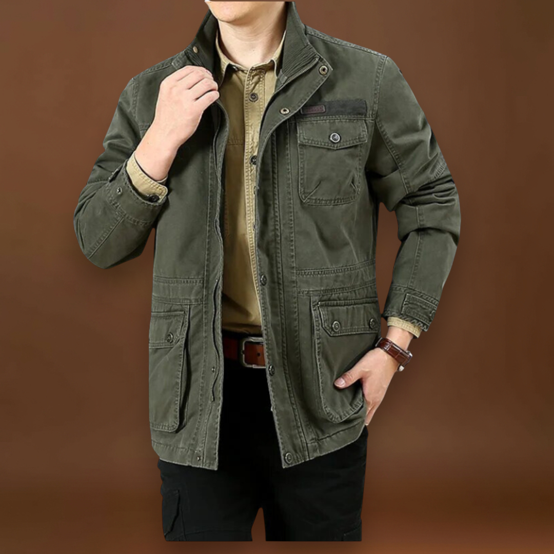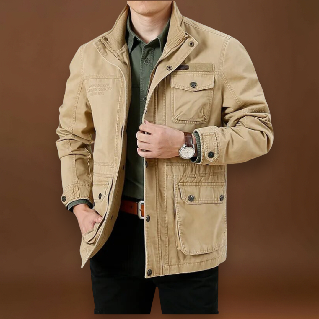 Casaco - Gola Alta, Layout de Múltiplos Bolsos e Construção Durável