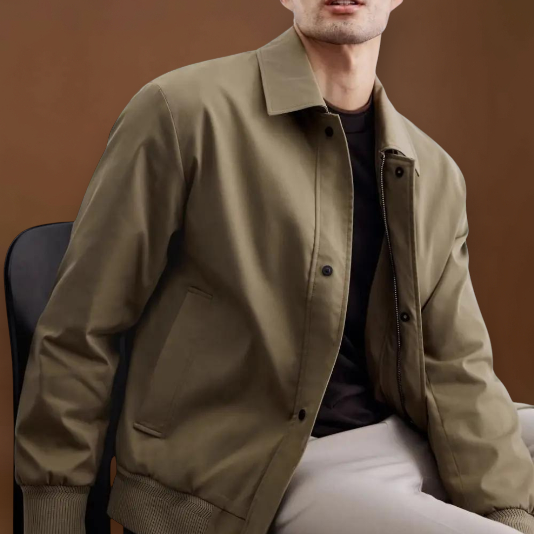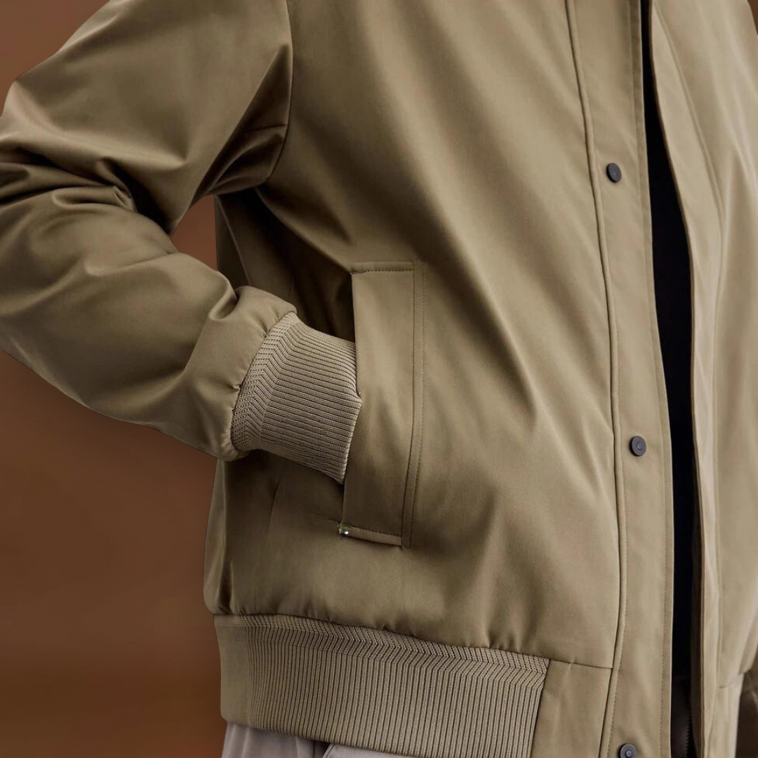 O Casaco Stratos é um casaco de mistura de lona de peso médio, projetado para sobreposições. Tem um corte ajustado que se adapta ao corpo, criando uma silhueta elegante. O casaco está disponível em tons neutros: caqui, preto e cinza escuro.