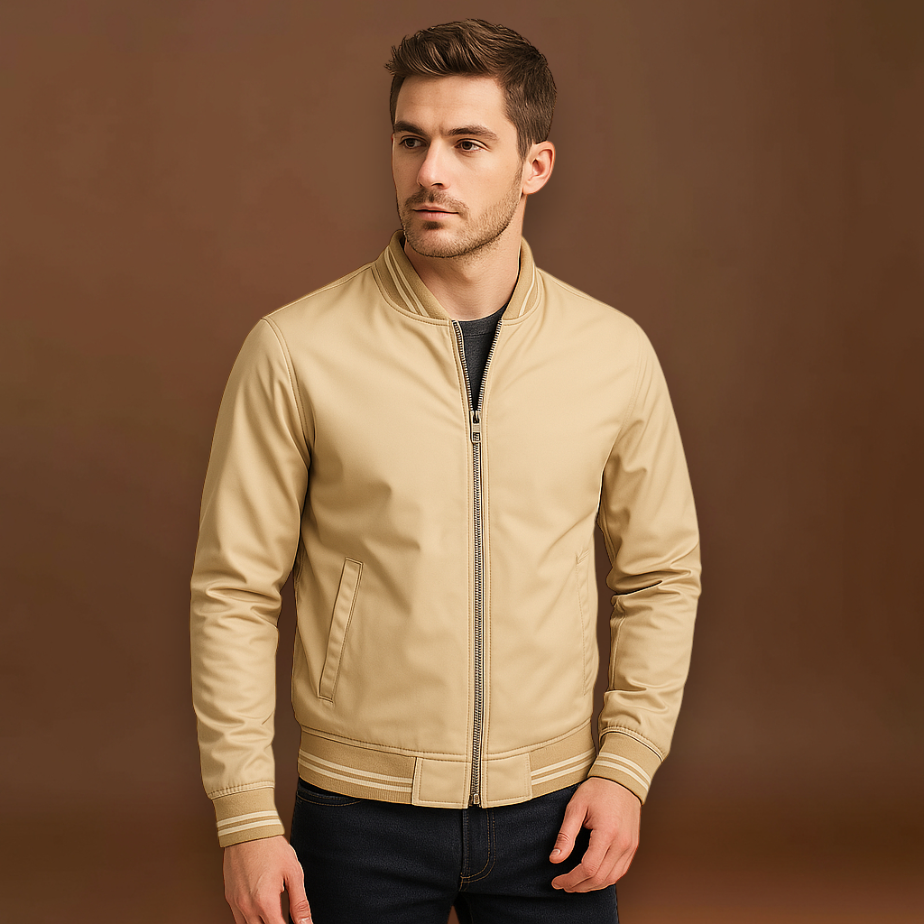 Casaco - Mistura de Poliéster com Gola Canelada e Camadas Fáceis