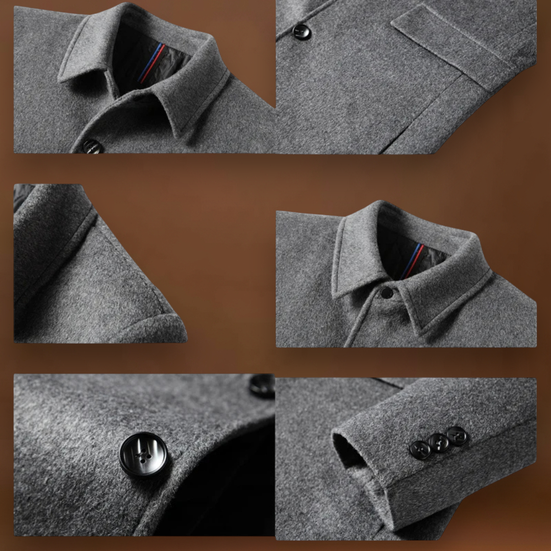 O Casaco Romano combina um design clássico com uma construção moderna. O casaco é feito de uma mistura de tecidos e foi concebido para proporcionar um ajuste consistente e um uso confortável. O seu corte suporta a sobreposição de peças enquanto mantém uma silhueta estruturada.