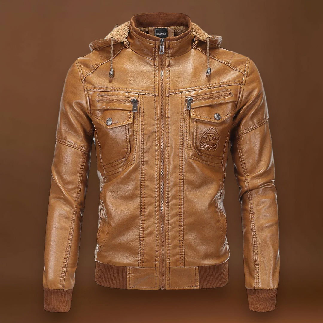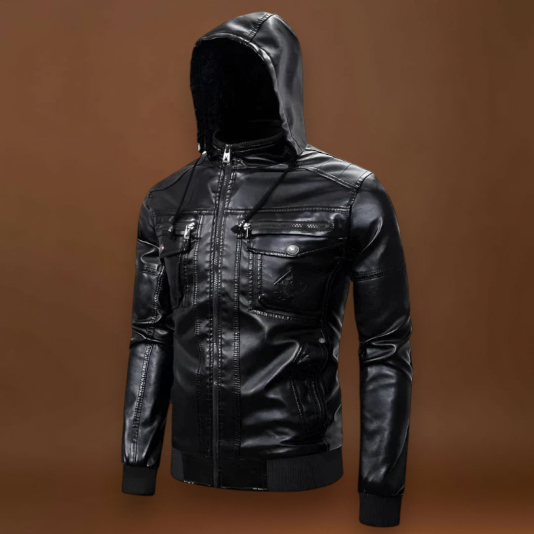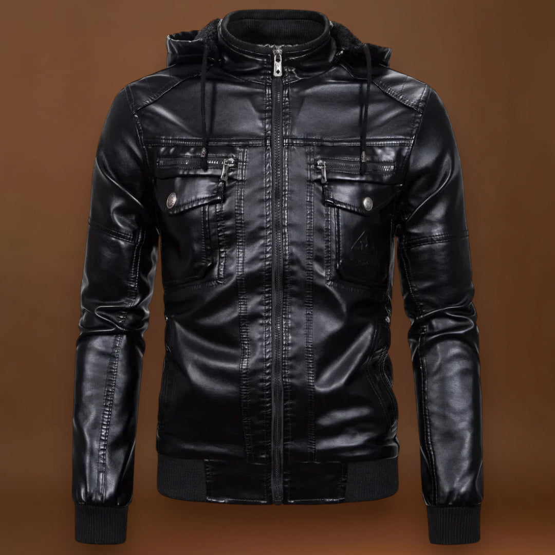Jaxon™ – Jaqueta de Couro com Capuz é perfeita para homens que buscam um visual moderno sem abrir mão do conforto. Com acabamento em couro e capuz integrado, essa jaqueta une o visual clássico ao toque casual—ideal para o dia a dia, passeios na cidade ou encontros noturnos.