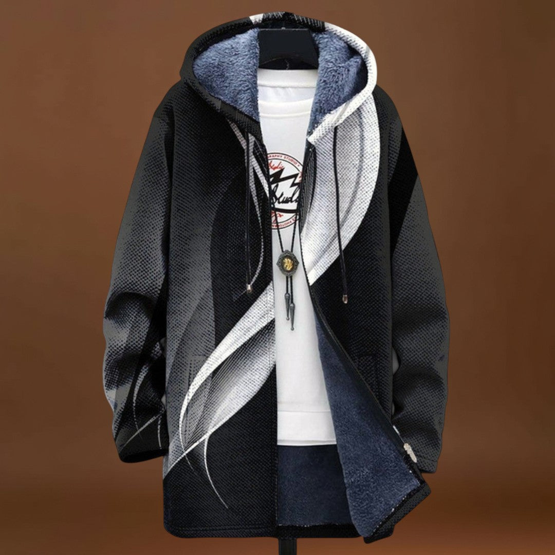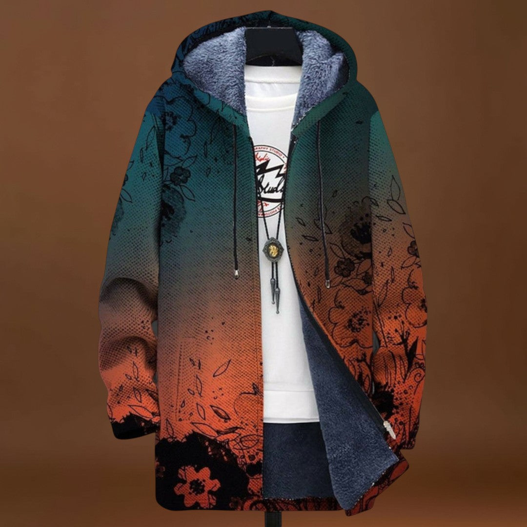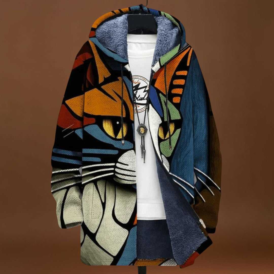Demonstre o seu visual com este casaco, reconhecível pelo seu cativante padrão artístico. Este casaco combina conforto e um design original, para que esteja elegante e confortável em qualquer ocasião.