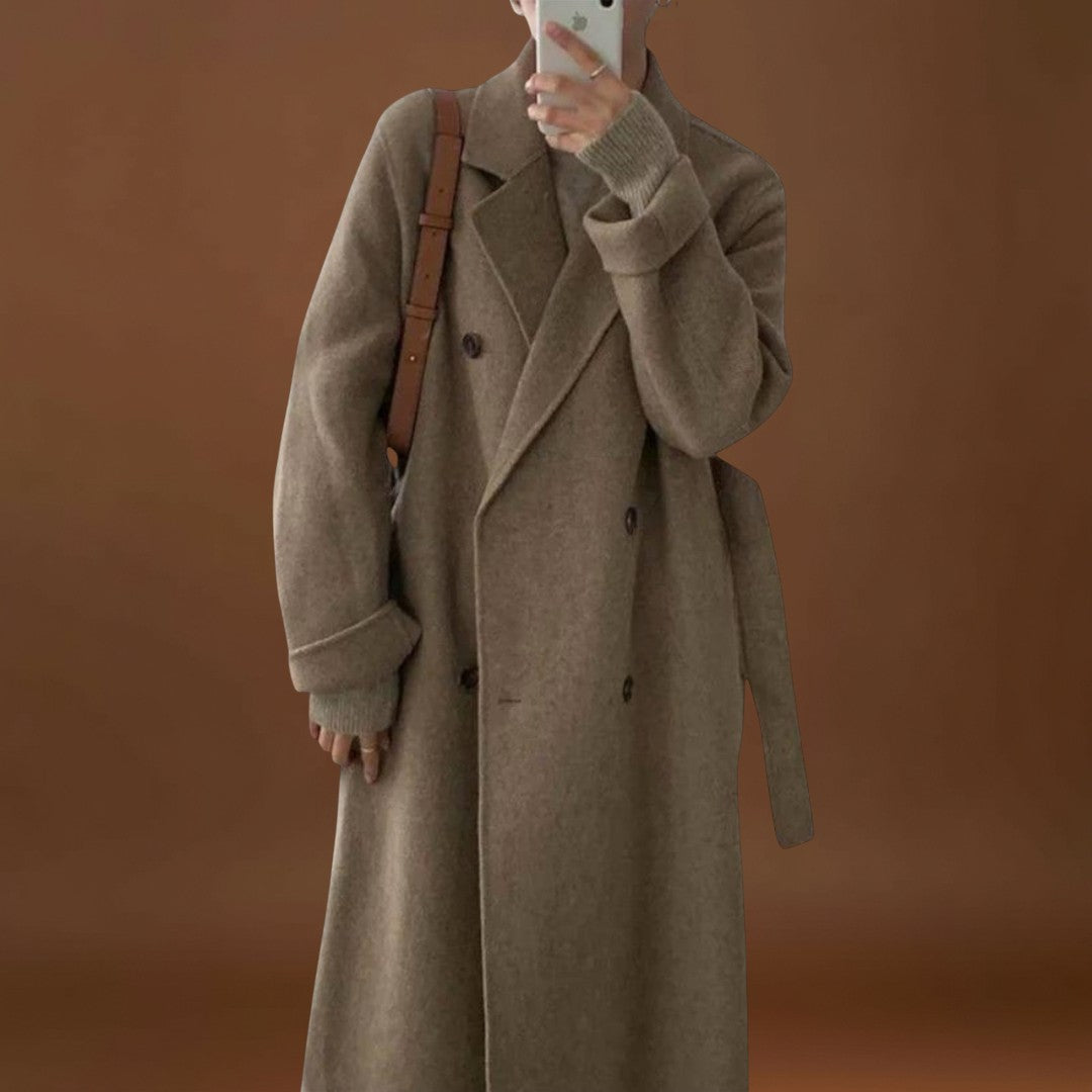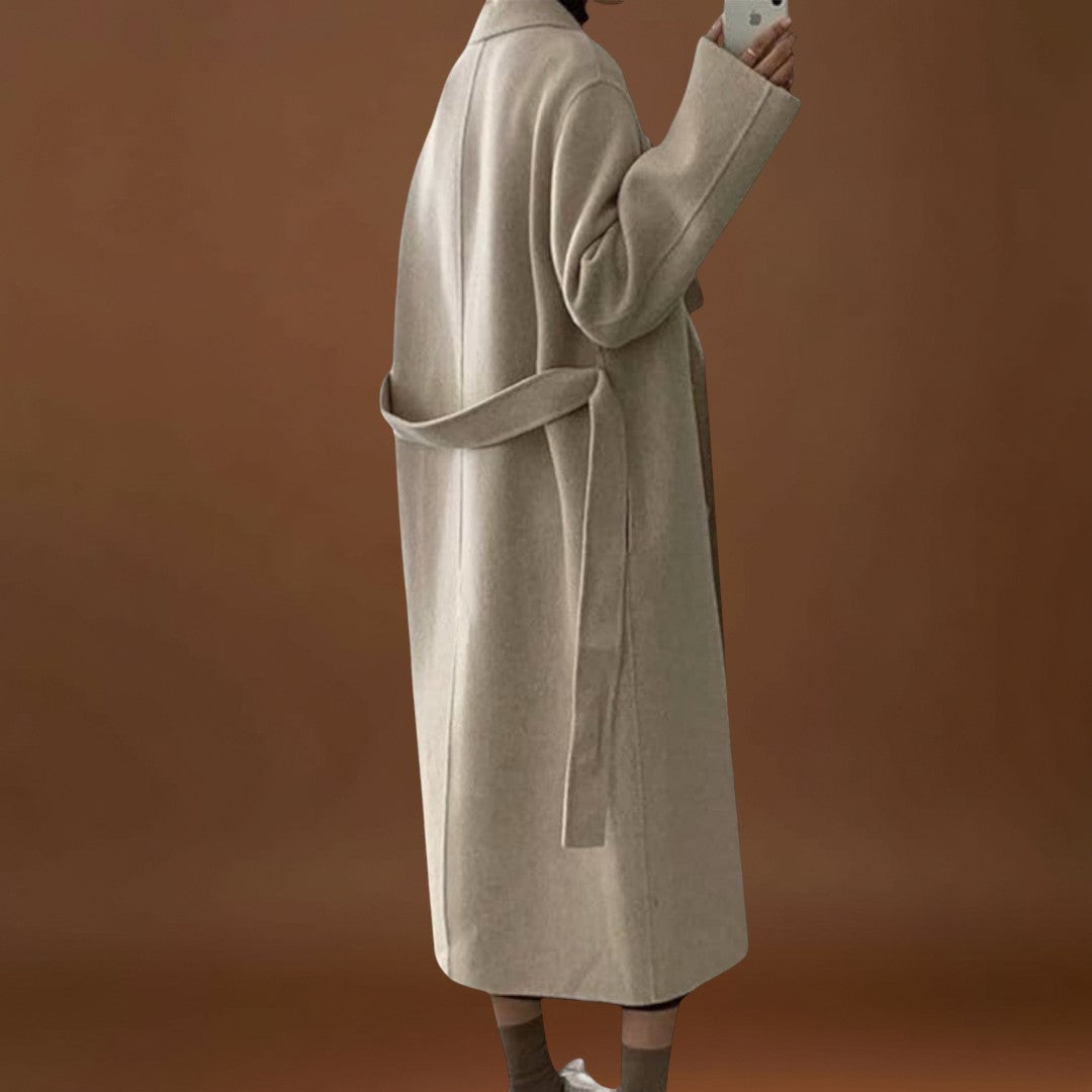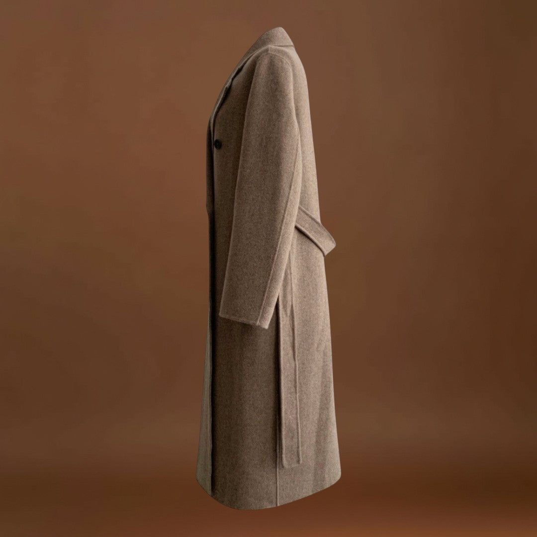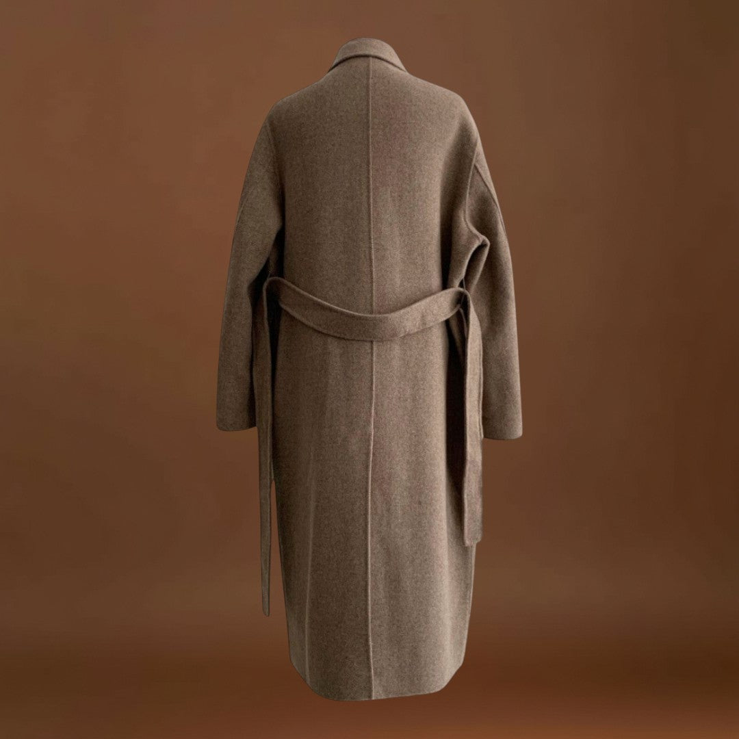 Este casaco longo combina na perfeição o estilo clássico com um aconchego irresistível. Com um colar sofisticado, botões elegantes e um cinto prático, oferece uma silhueta refinada enquanto mantém o conforto em dias frios. Ideal tanto para o dia a dia como para ocasiões especiais, este casaco alia funcionalidade e elegância atemporal.