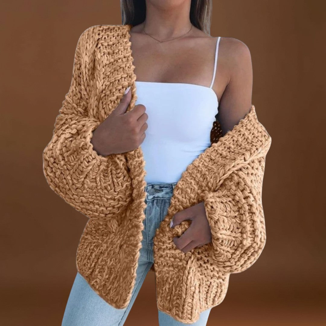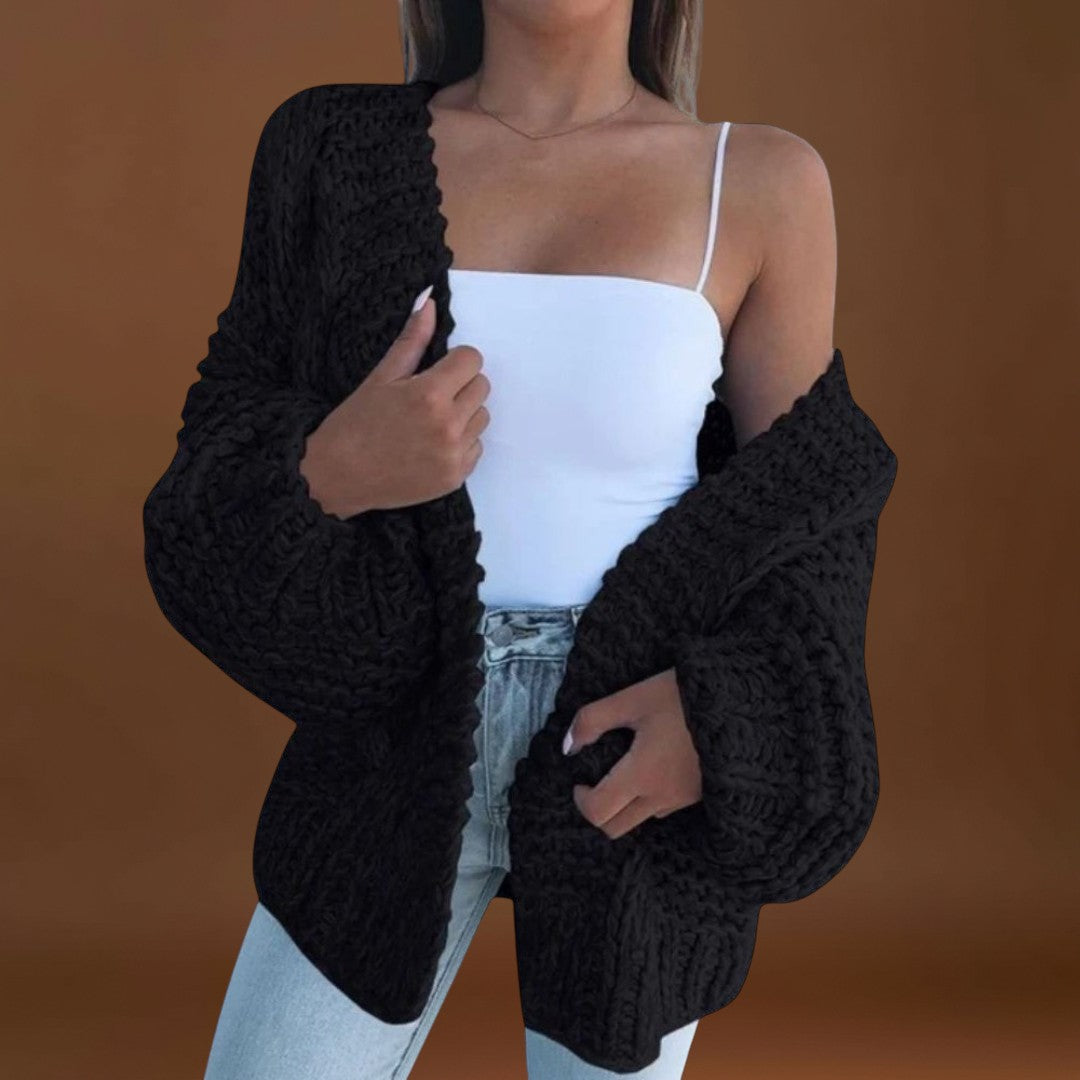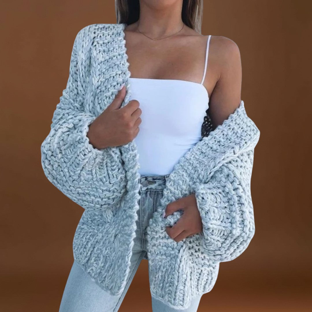 Estrutura acolhedora e elegante: O design em malha grossa acrescenta profundidade e um toque de sofisticação sem esforço a qualquer outfit.