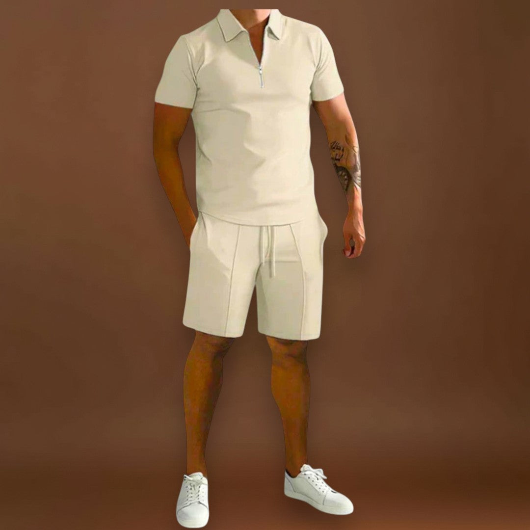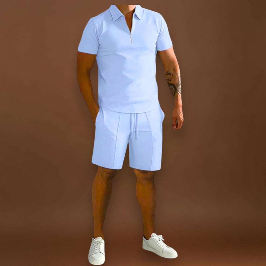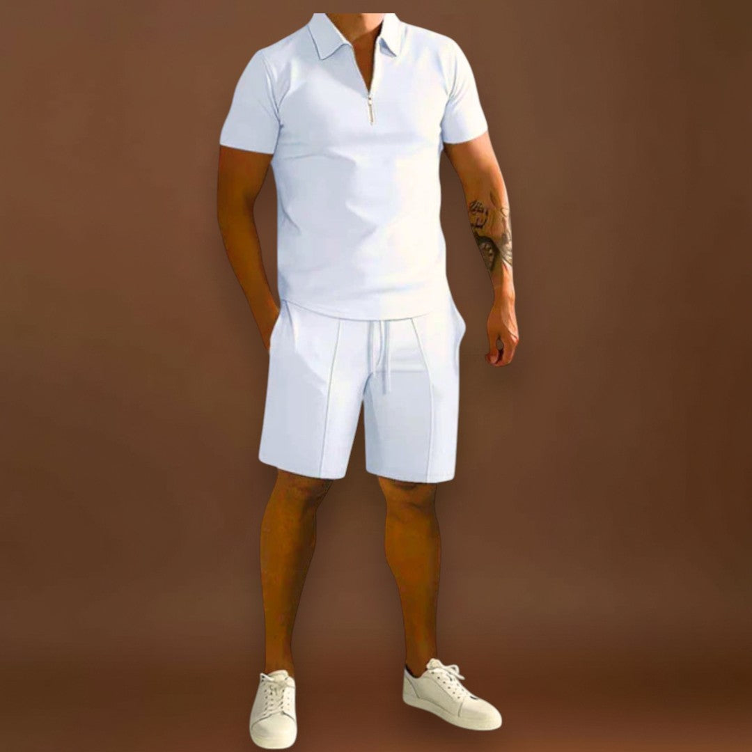 O conjunto Carlos combina polo e calções num estilo sofisticado mas descontraído, ideal para os dias mais quentes. Versátil e moderno, adapta-se facilmente a diferentes ocasiões, desde encontros casuais a momentos mais elegantes de verão.