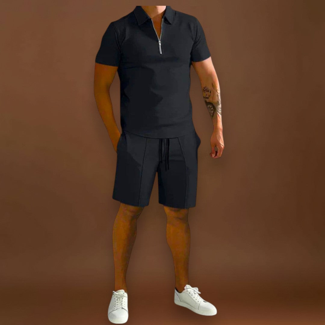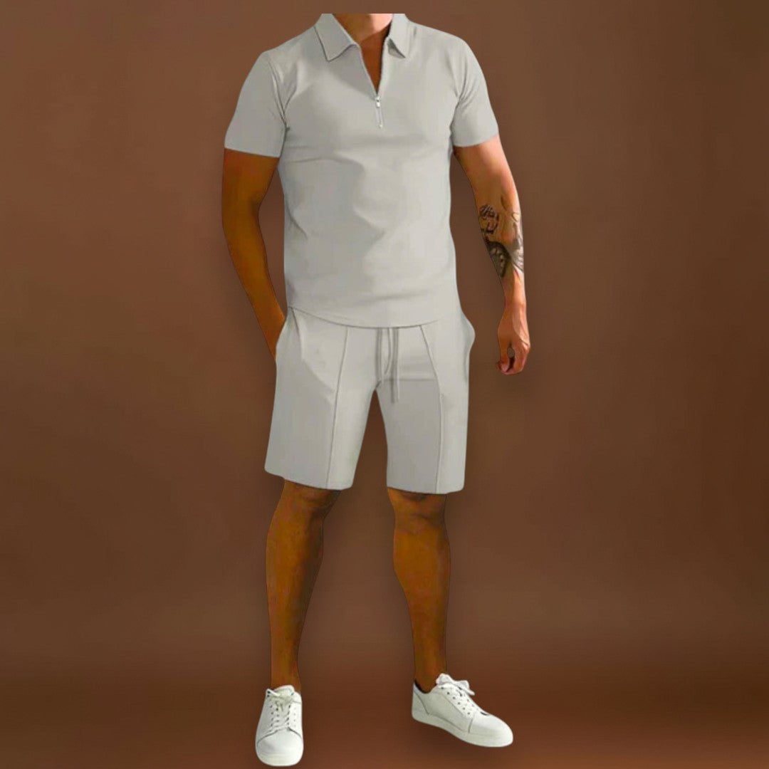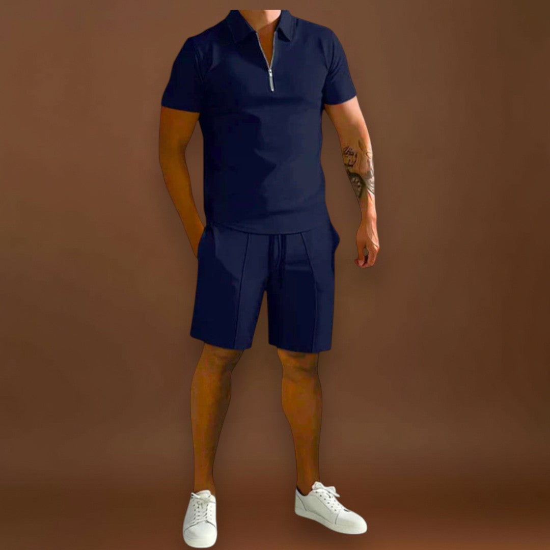 O conjunto Carlos combina polo e calções num estilo sofisticado mas descontraído, ideal para os dias mais quentes. Versátil e moderno, adapta-se facilmente a diferentes ocasiões, desde encontros casuais a momentos mais elegantes de verão.