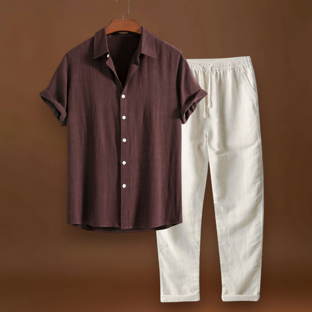 Conjunto de Duas Peças - Manga Curta & Mistura de Poliéster Respirável