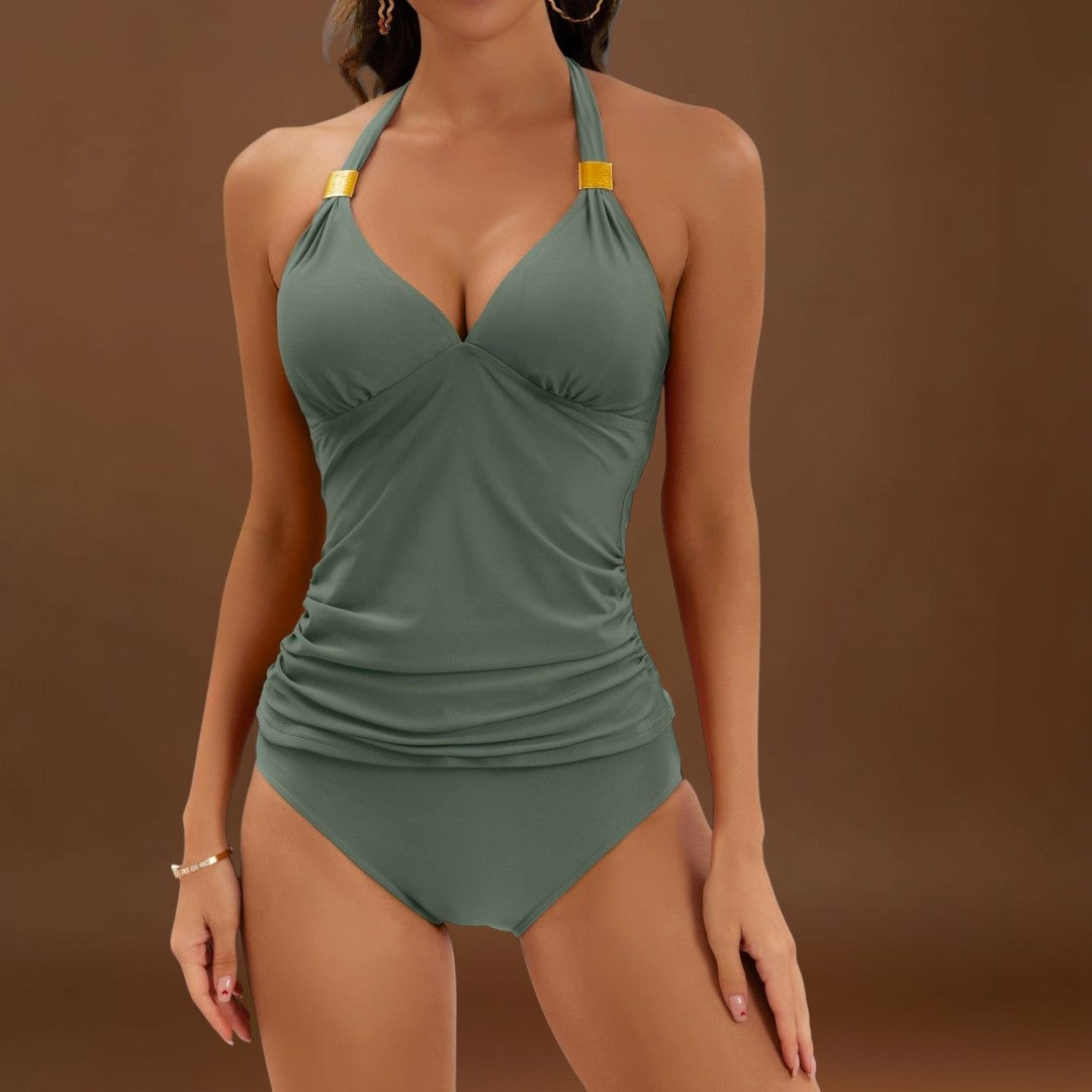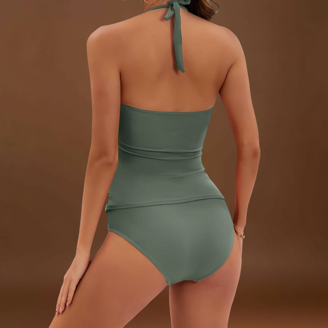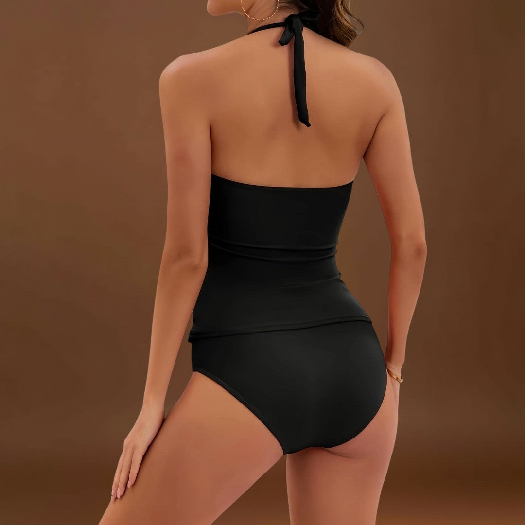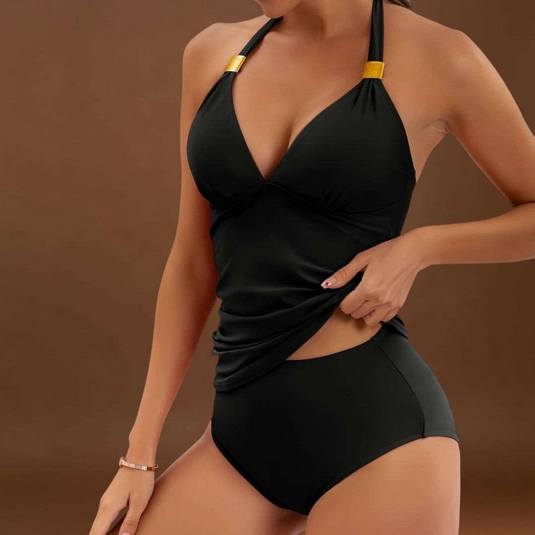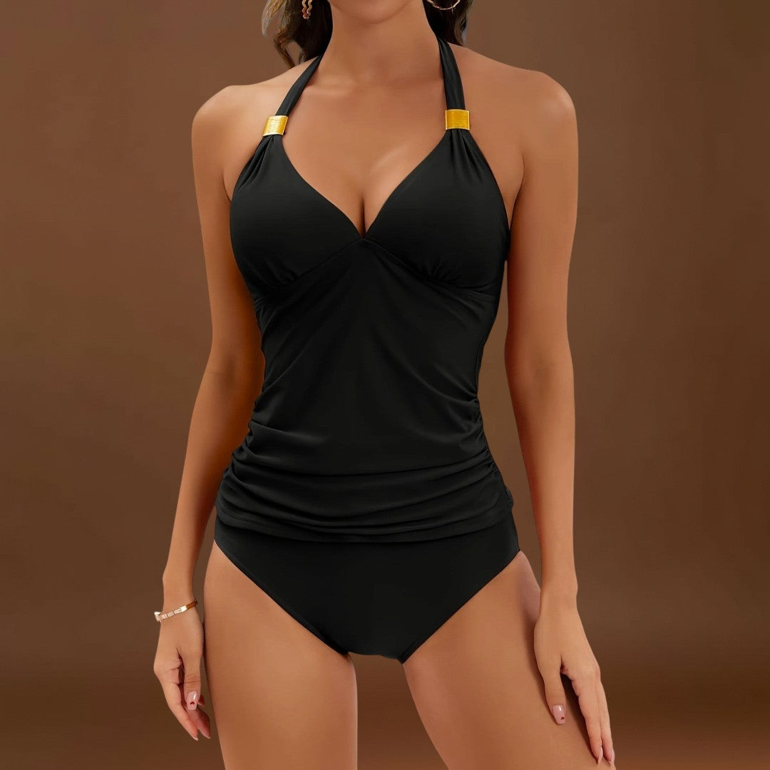 Deixe a sua confiança brilhar com este tankini elegante e favorecedor da silhueta. O modelo Sienna foi desenhado para valorizar as suas curvas naturais e oferecer suporte onde mais precisa. O tecido levemente plissado e o top mais comprido proporcionam uma cobertura bonita da barriga e das ancas, sem apertar em excesso. Ideal para quem deseja sentir-se elegante e confortável – seja a nadar, a passear pela praia ou a relaxar com um bom livro.