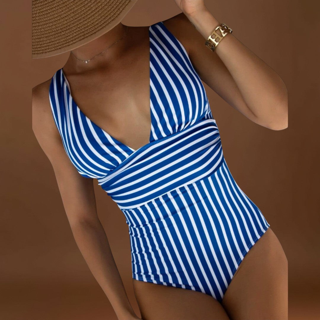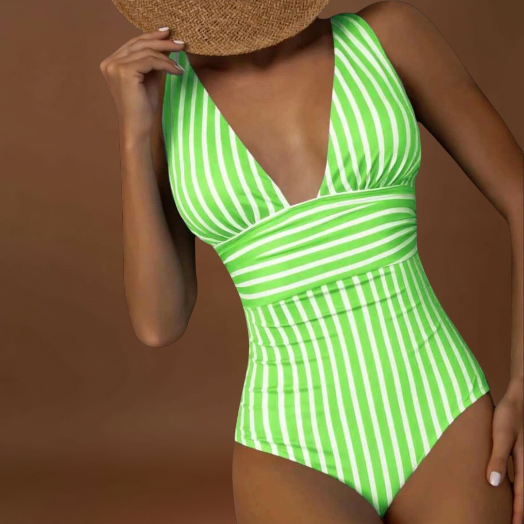 O fato de banho Vera foi pensado para mulheres que não querem preocupar-se com a barriga, ancas ou peito mais cheio. As riscas verticais alongam a silhueta e disfarçam as zonas indesejadas, enquanto o suporte suave e as alças ajustáveis garantem um ajuste seguro sem desconforto. Feminino, elegante e com disfarce confiante.