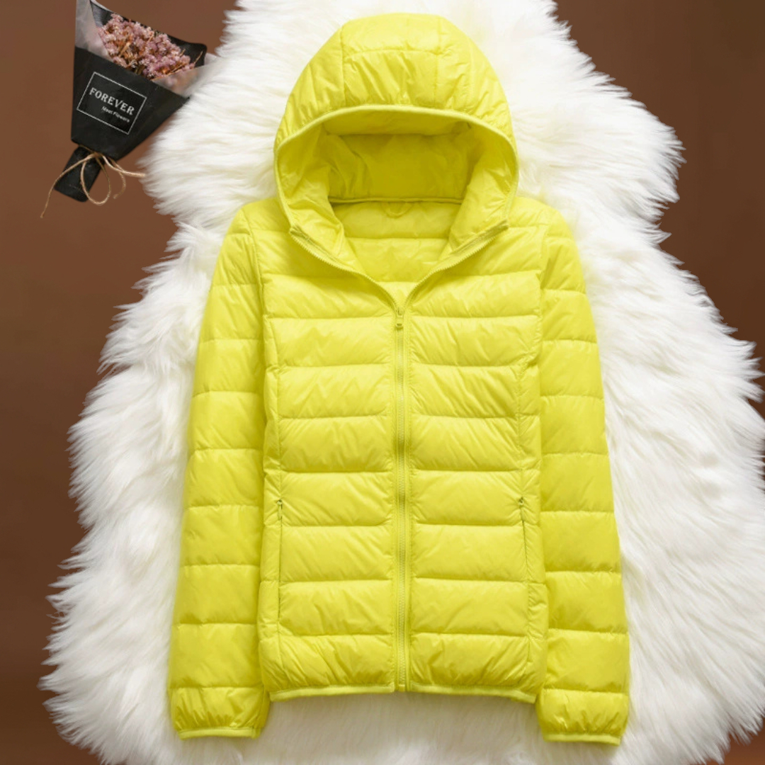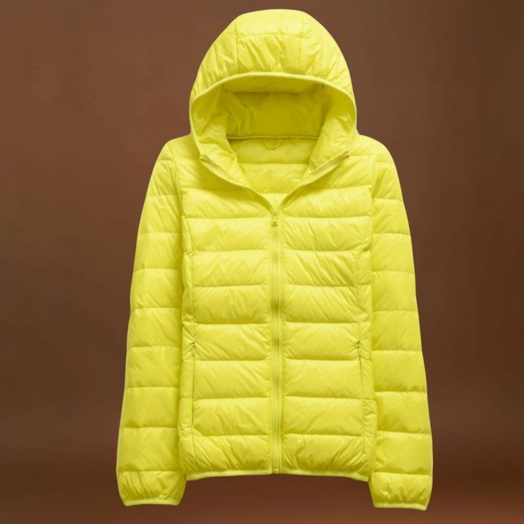 A tecnologia impermeável garante que fiques protegida de chuvas inesperadas, enquanto o enchimento suave em penas te mantém quente sem tornar o casaco volumoso. As pregas refinadas acrescentam um toque de elegância, tornando este casaco perfeito tanto para looks casuais como para conjuntos mais sofisticados.