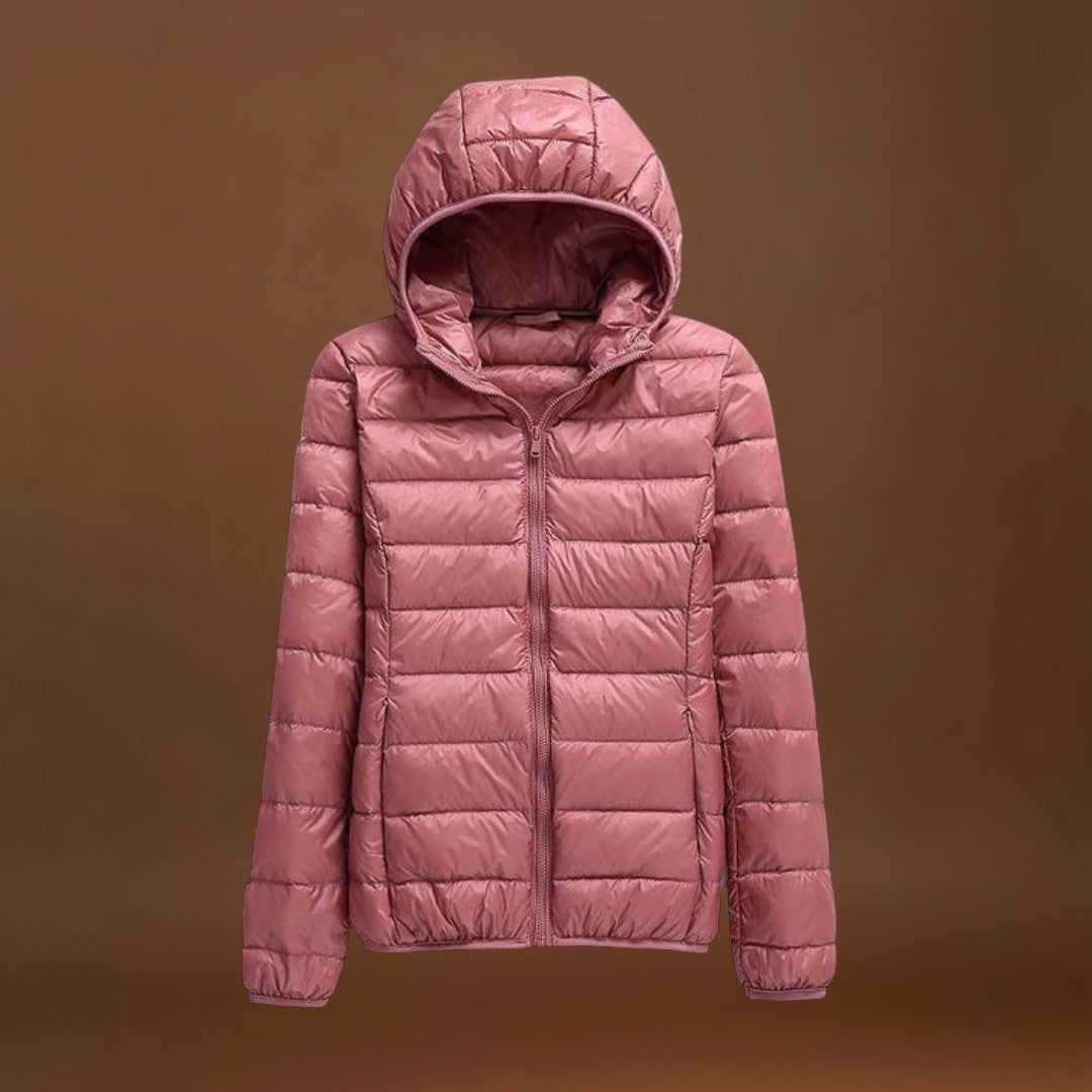 A tecnologia impermeável garante que fiques protegida de chuvas inesperadas, enquanto o enchimento suave em penas te mantém quente sem tornar o casaco volumoso. As pregas refinadas acrescentam um toque de elegância, tornando este casaco perfeito tanto para looks casuais como para conjuntos mais sofisticados.