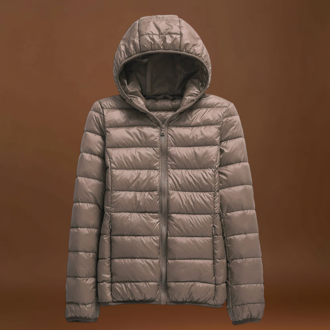 A tecnologia impermeável garante que fiques protegida de chuvas inesperadas, enquanto o enchimento suave em penas te mantém quente sem tornar o casaco volumoso. As pregas refinadas acrescentam um toque de elegância, tornando este casaco perfeito tanto para looks casuais como para conjuntos mais sofisticados.