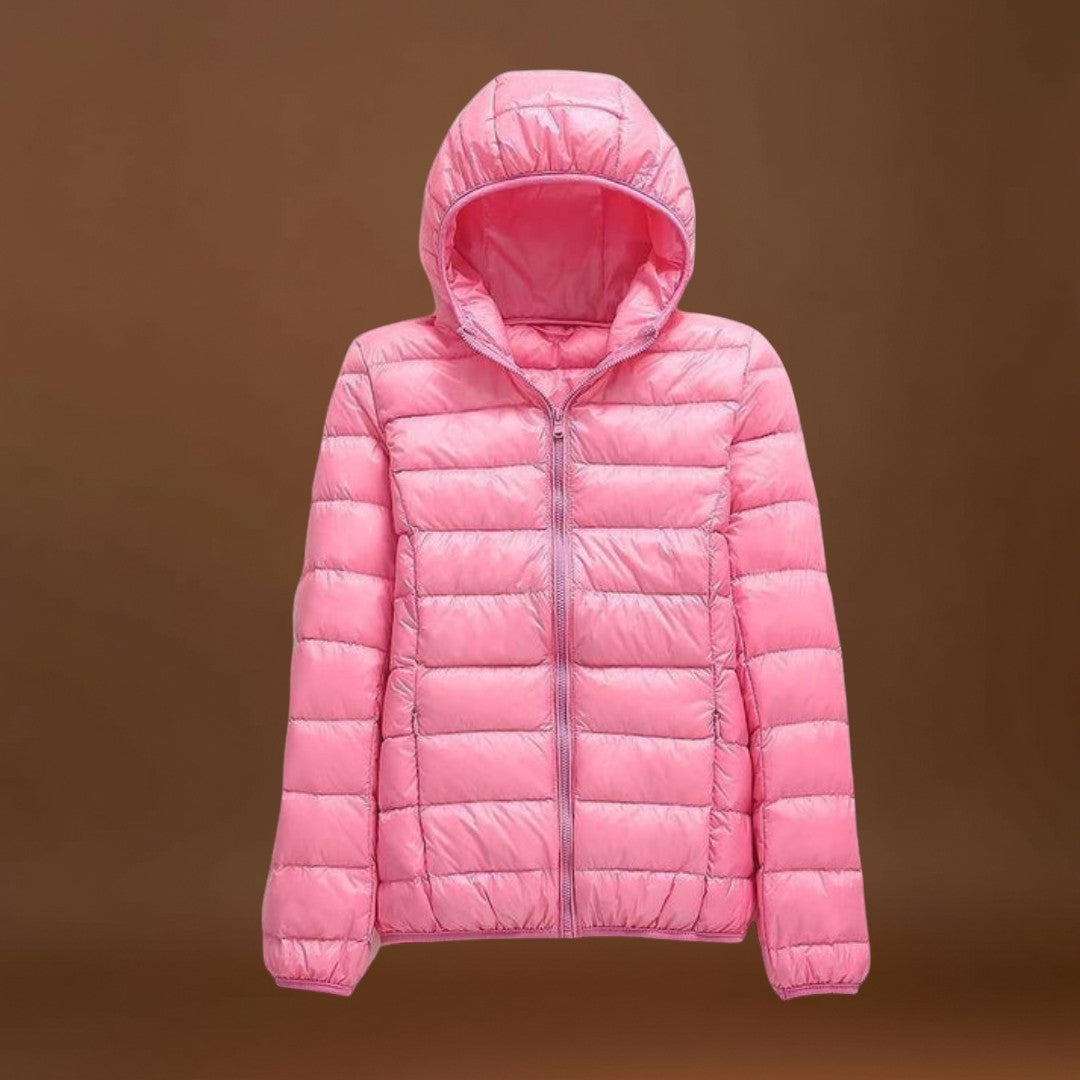 A tecnologia impermeável garante que fiques protegida de chuvas inesperadas, enquanto o enchimento suave em penas te mantém quente sem tornar o casaco volumoso. As pregas refinadas acrescentam um toque de elegância, tornando este casaco perfeito tanto para looks casuais como para conjuntos mais sofisticados.