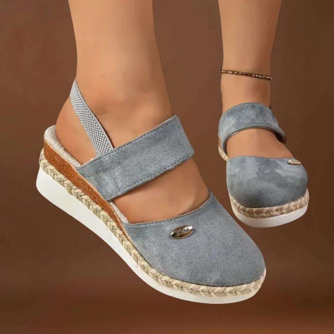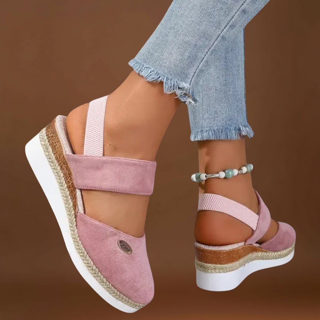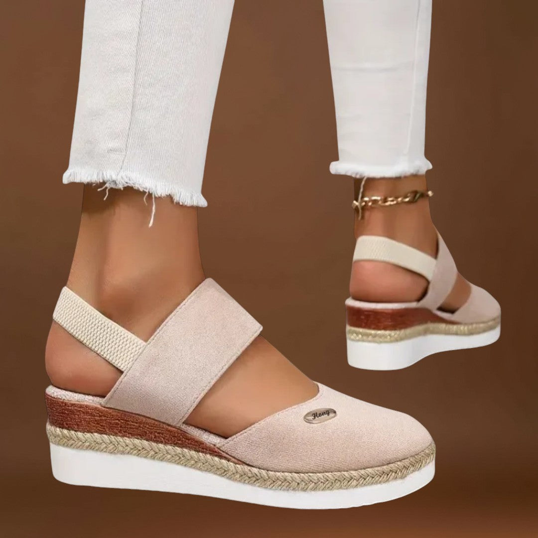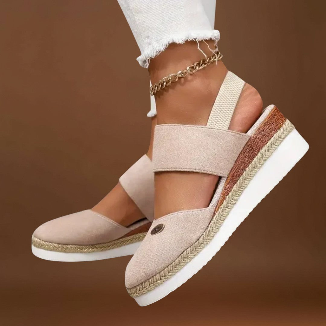 Estas sandálias com cunha são o equilíbrio perfeito entre conforto e estilo. Com design moderno e feminino, oferecem uma base estável, elástico para ajuste prático e uma palmilha macia que acompanha o movimento do pé. O tom nude e os detalhes em juta e cortiça tornam-nas ideais para looks casuais elegantes — desde passeios ao fim de semana até eventos ao ar livre.