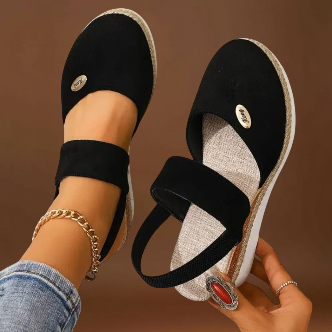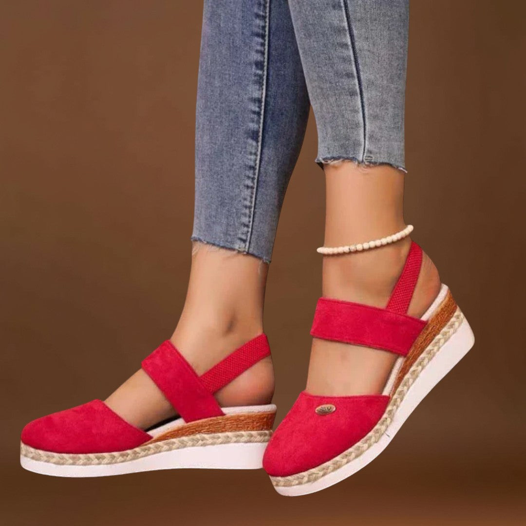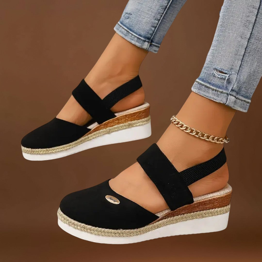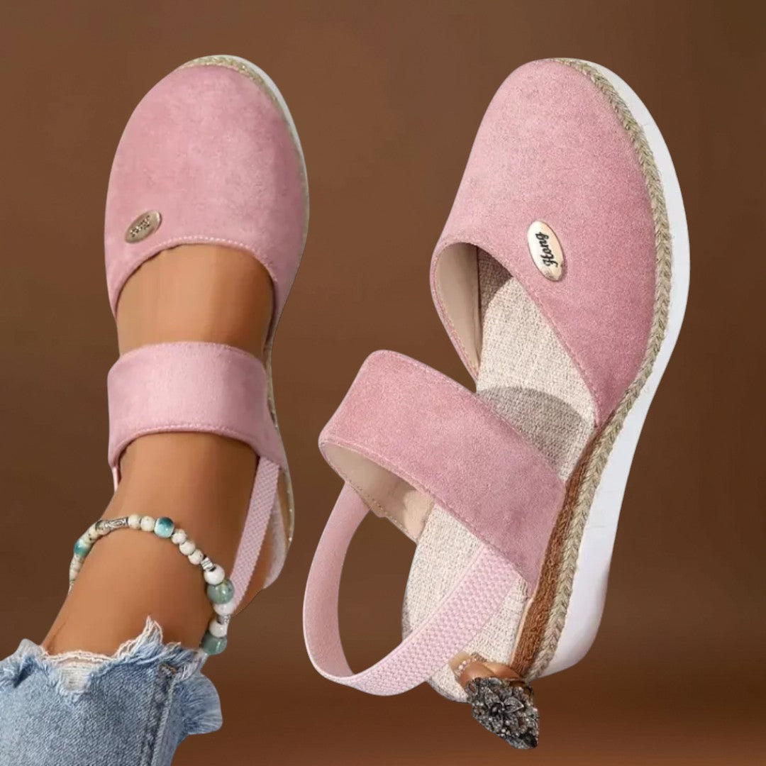 Estas sandálias com cunha são o equilíbrio perfeito entre conforto e estilo. Com design moderno e feminino, oferecem uma base estável, elástico para ajuste prático e uma palmilha macia que acompanha o movimento do pé. O tom nude e os detalhes em juta e cortiça tornam-nas ideais para looks casuais elegantes — desde passeios ao fim de semana até eventos ao ar livre.