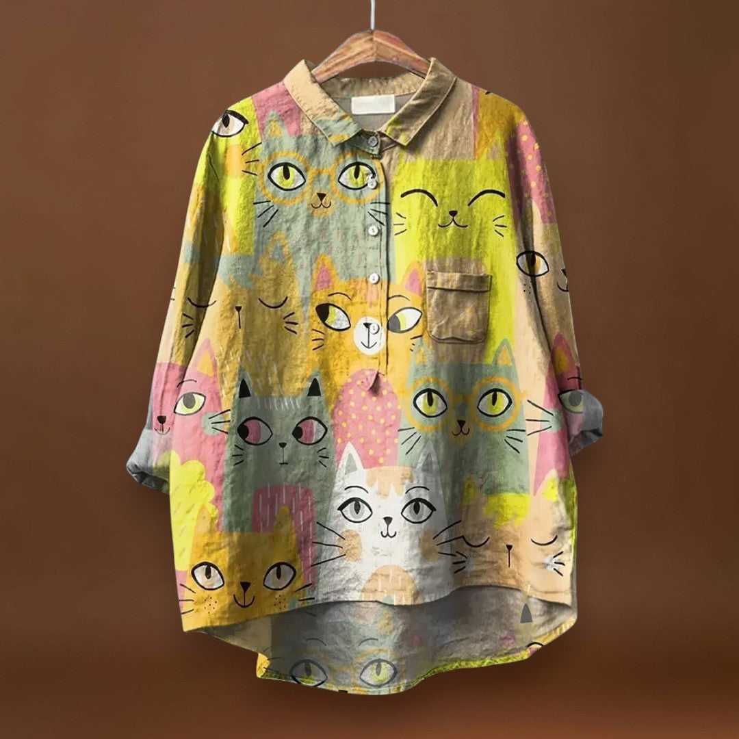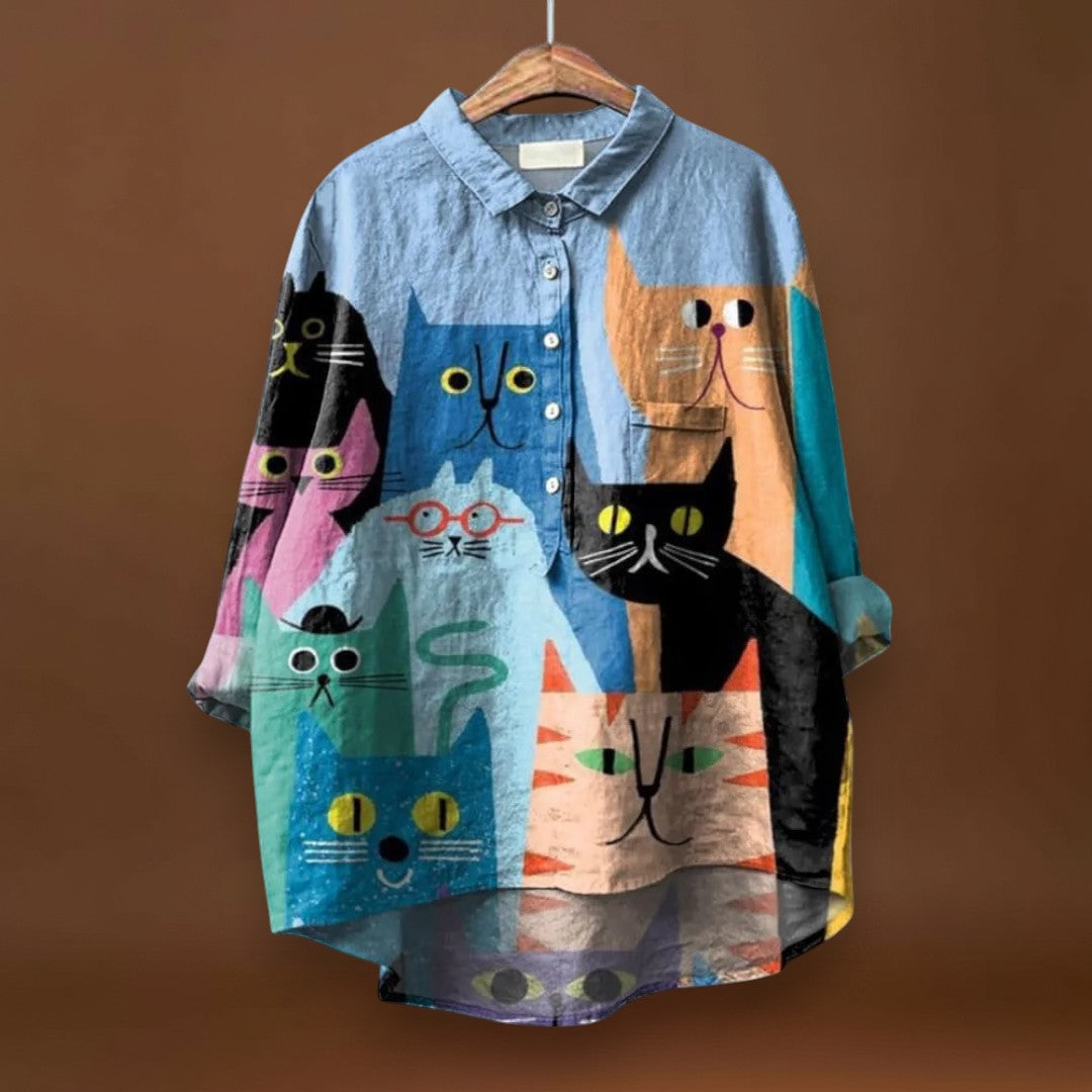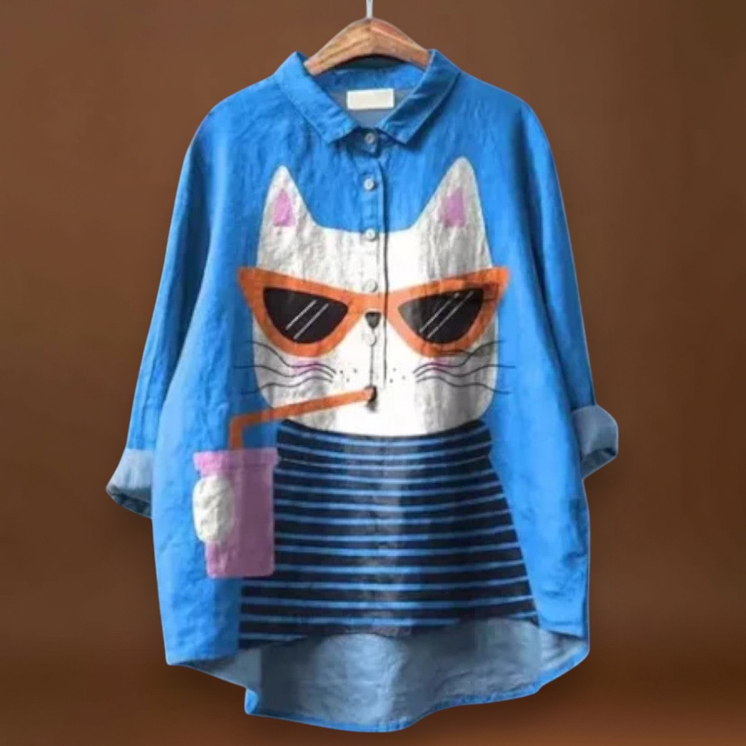 Essa camisa é perfeita para quem adora peças únicas e divertidas! Com estampa de um gatinho estiloso de óculos e bebida na mão, ela traz um toque irreverente e criativo ao visual. Ideal para composições casuais, combina com jeans, leggings ou shorts para um look leve e cheio de atitude.