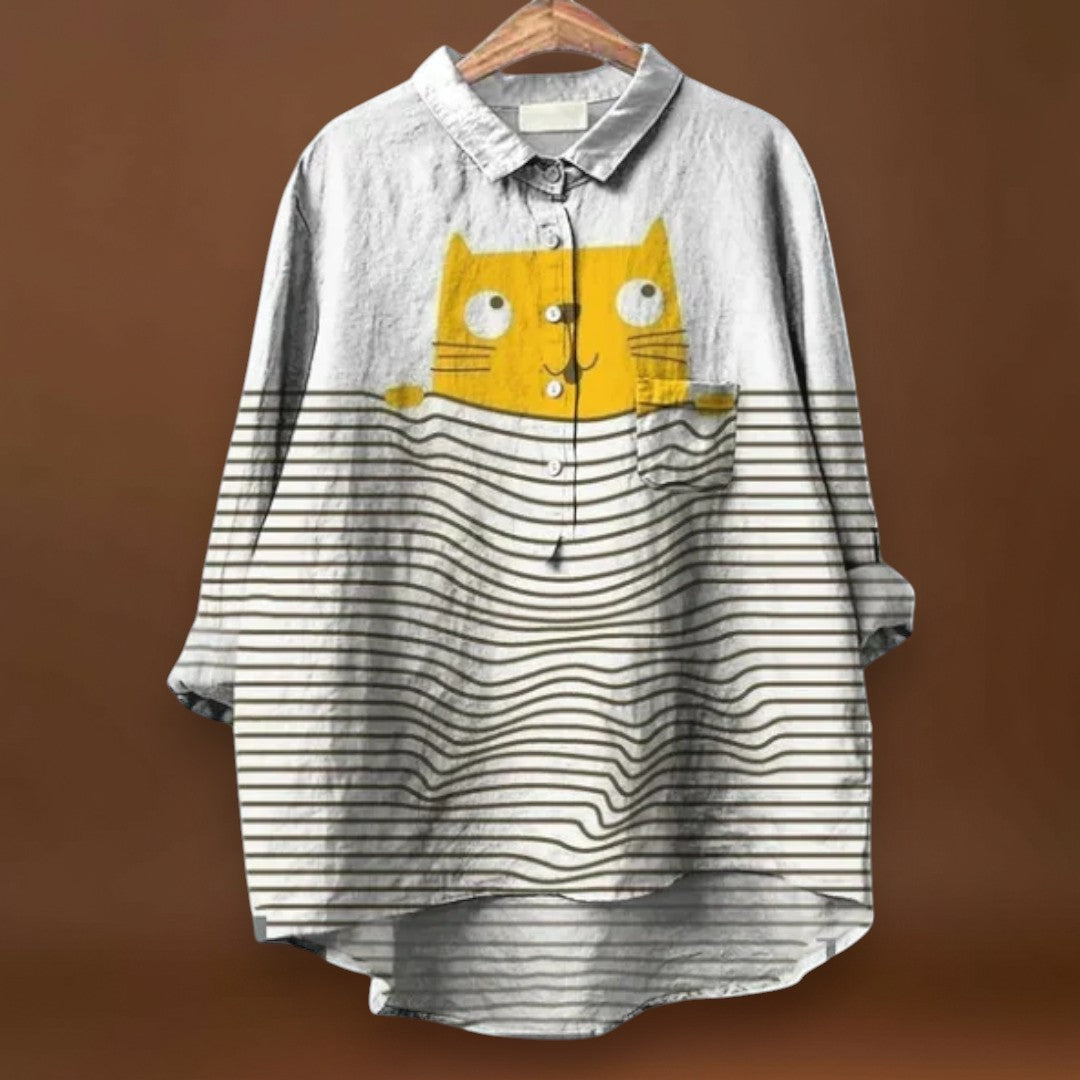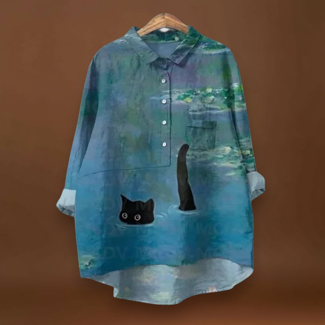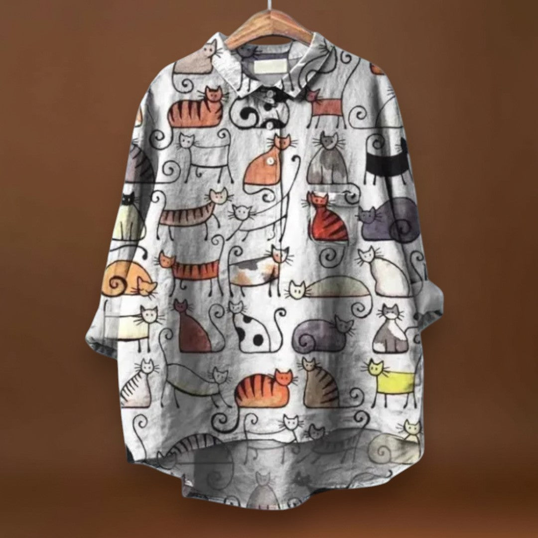 Essa camisa é perfeita para quem adora peças únicas e divertidas! Com estampa de um gatinho estiloso de óculos e bebida na mão, ela traz um toque irreverente e criativo ao visual. Ideal para composições casuais, combina com jeans, leggings ou shorts para um look leve e cheio de atitude.