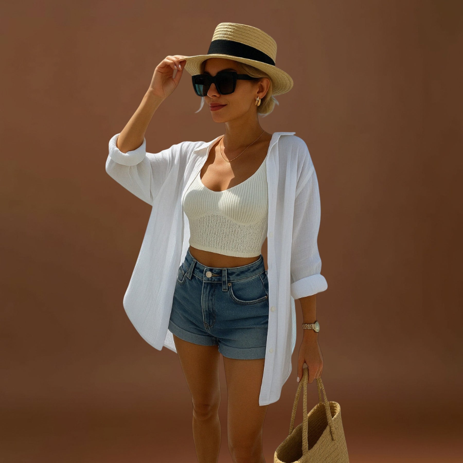 Versátil e fácil de combinar – Fica perfeito por cima de biquínis ou com calções, criando looks effortless-chic para o verão.