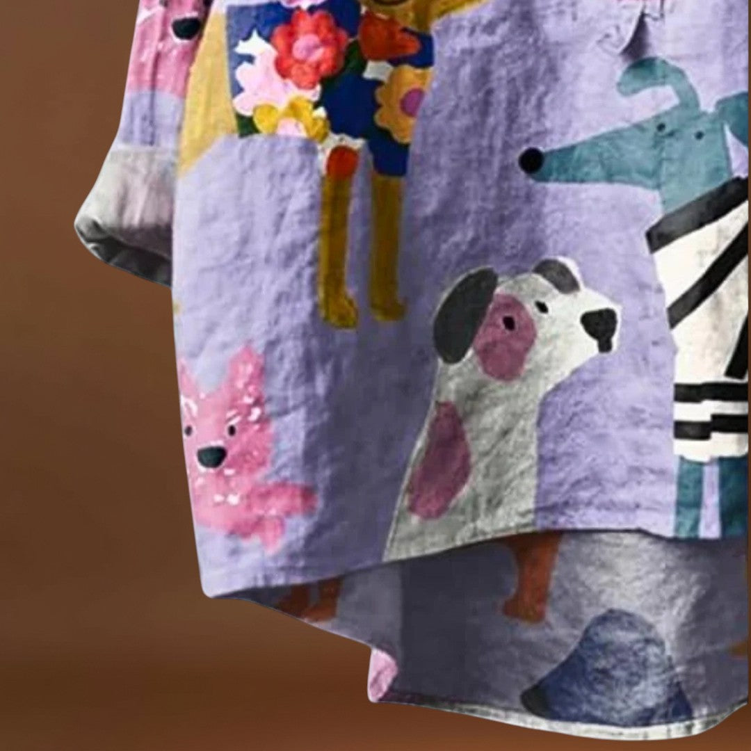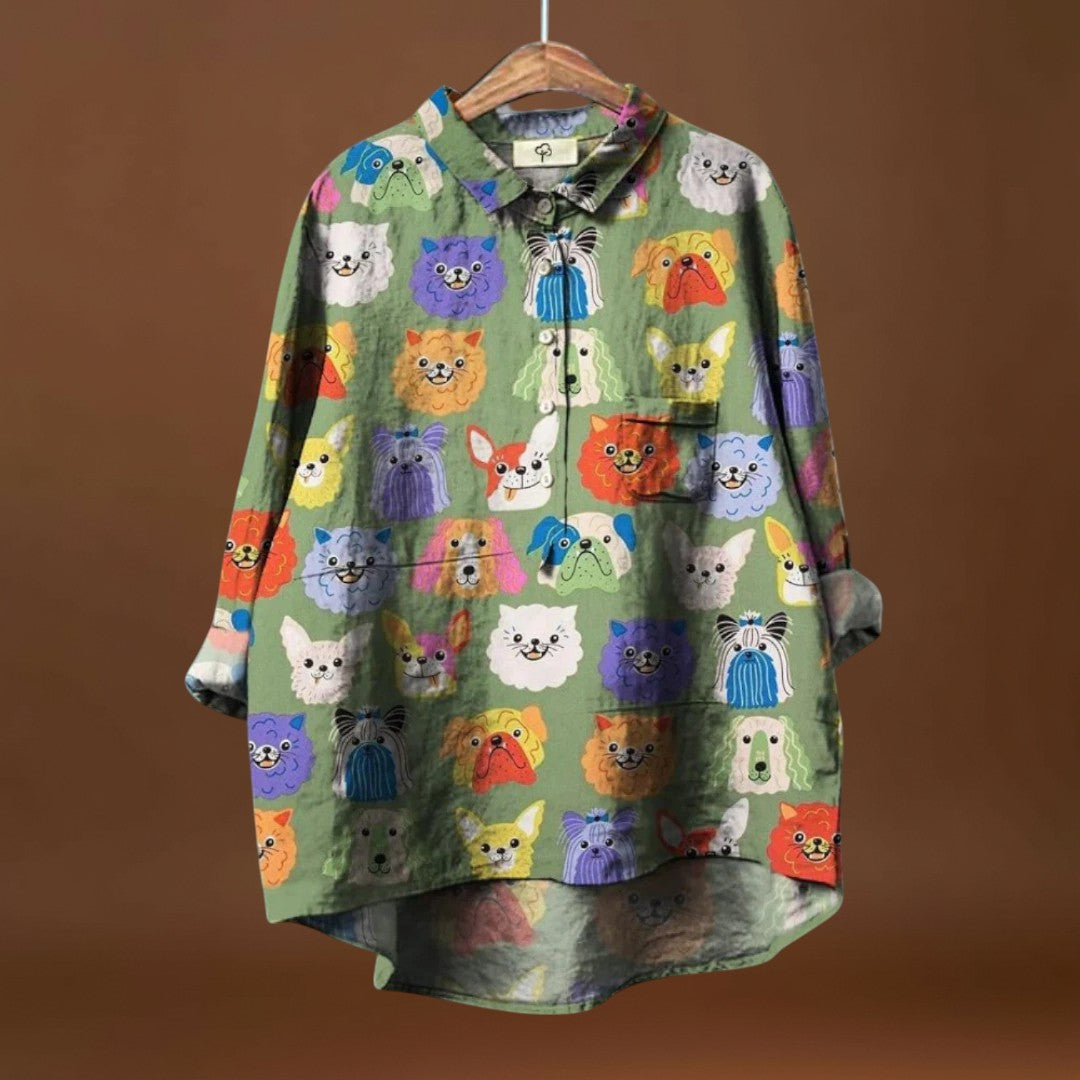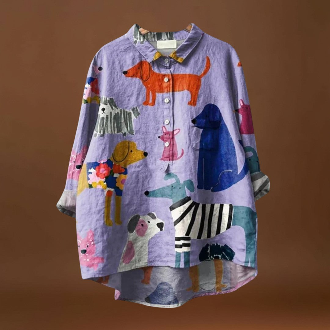 Esta camisa é a escolha perfeita para quem adora unir conforto, criatividade e bom humor. Com uma modelagem ampla e moderna, ela se destaca pela estampa artística repleta de cãezinhos coloridos que transmitem leveza e autenticidade. Ideal para expressar seu lado mais descontraído com muito charme, seja no dia a dia ou em momentos casuais.