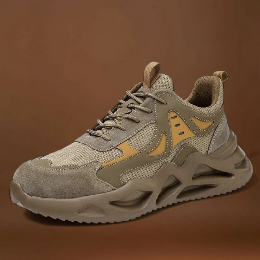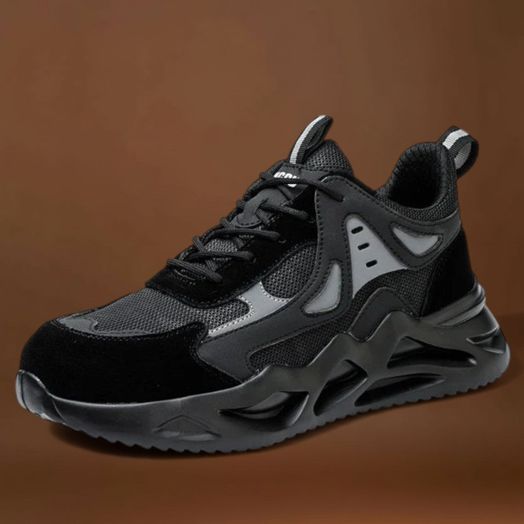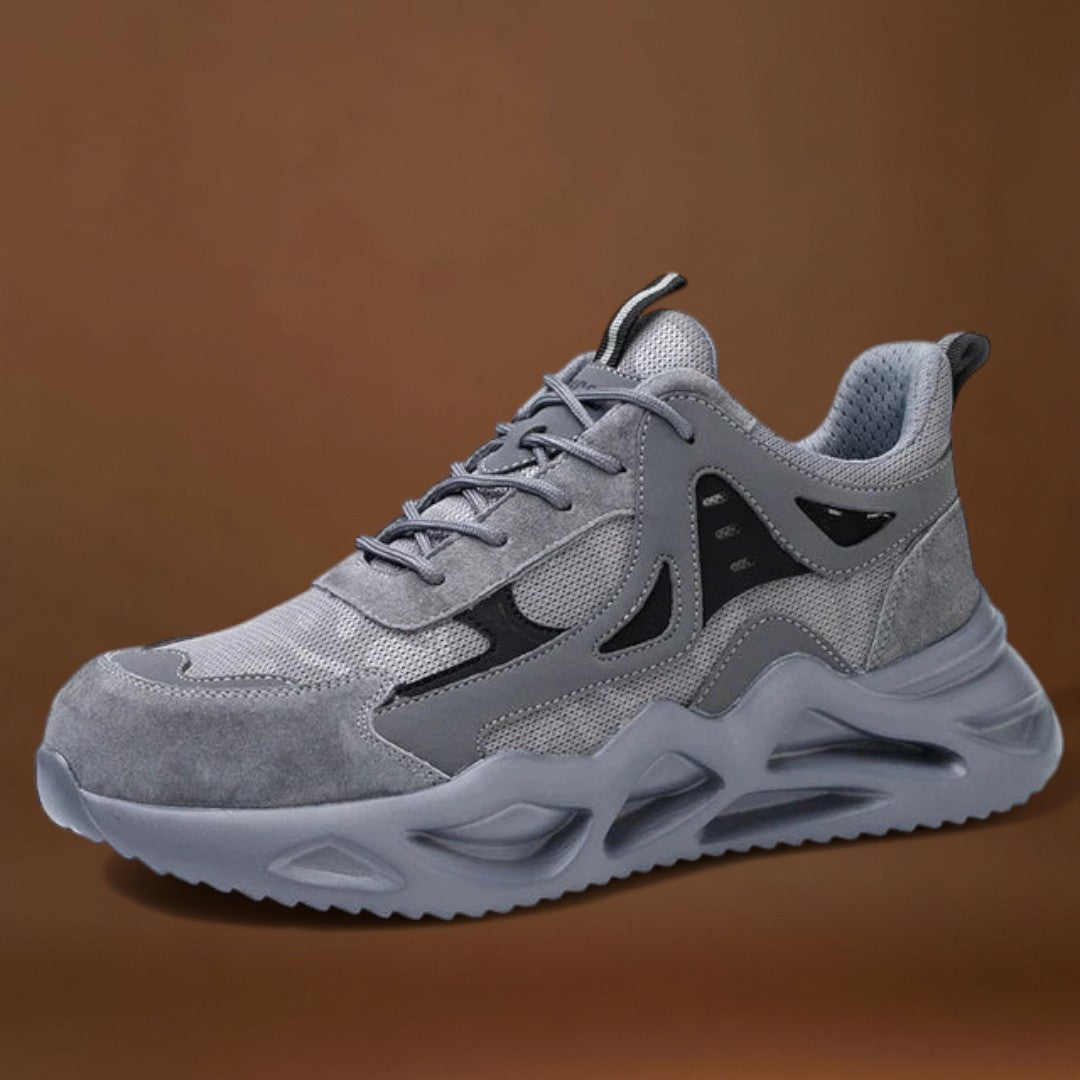 Estes ténis utilizam uma construção leve para reduzir a fadiga dos pés durante longos períodos de uso. Eles combinam suporte confortável para os pés com elementos de design focados na segurança para ajudar a manter uma base segura e um movimento estável.