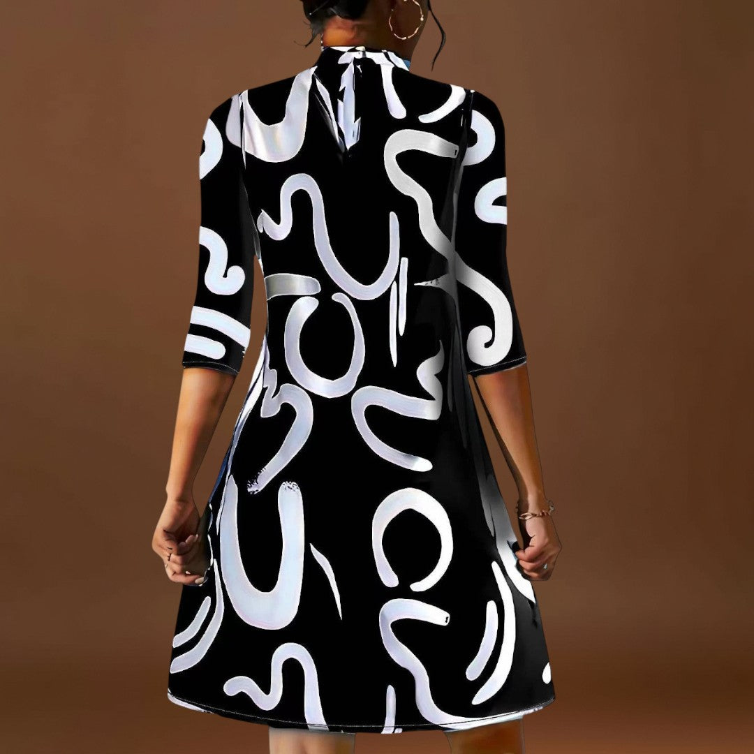 • Estilo elegante: O decote com gola e o padrão estampado criam um visual elegante.