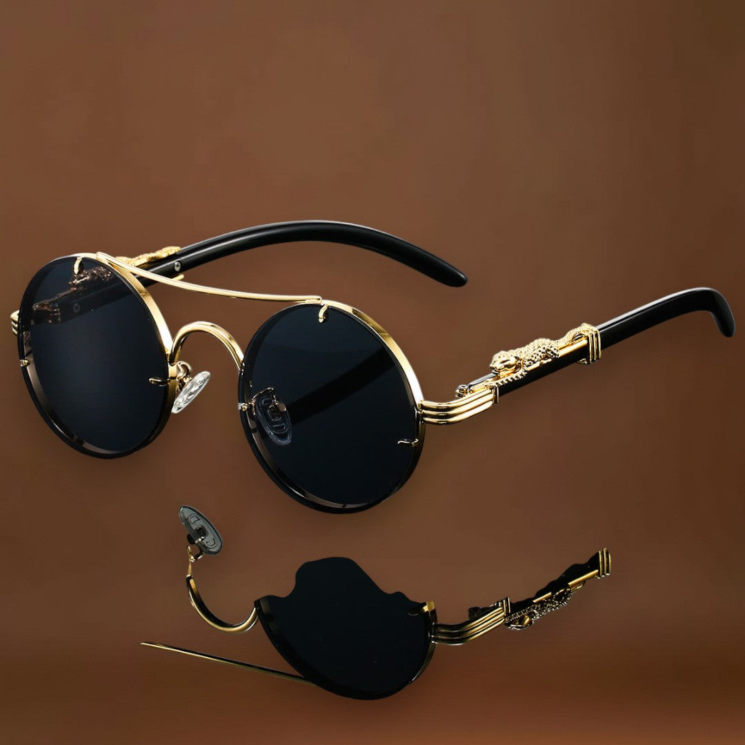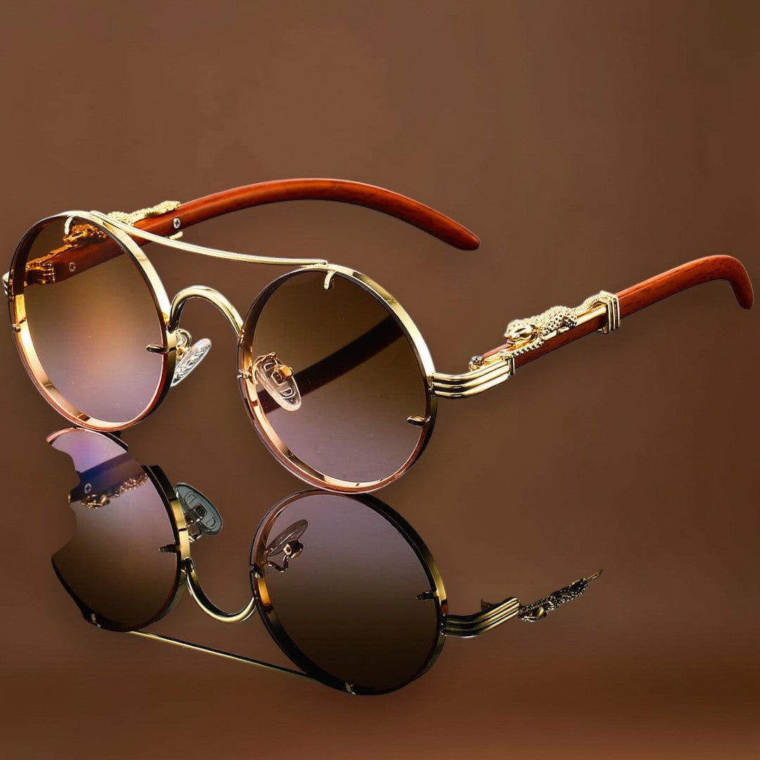 Com os nossos óculos, não só pareces bem – como também te sentes assim. Com lentes redondas, detalhes dourados luxuosos e o icónico acento de pantera, Lutz é mais do que apenas um óculos de sol – é uma afirmação. A proteção UV400 garante que os teus olhos estejam seguros e estilosos durante todo o ano.